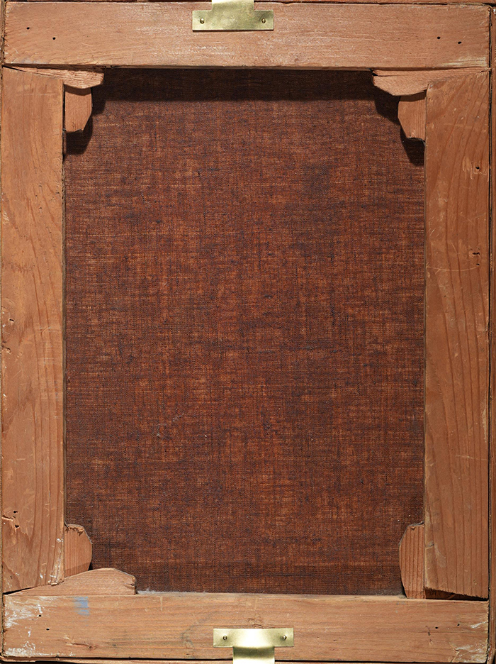 Ragione Raffaele (Napoli 1851 - 1925) Veduta di un cortile rustico con figura femminile olio su tela, cm 40x30 firmato in basso a sinistra: Ragione