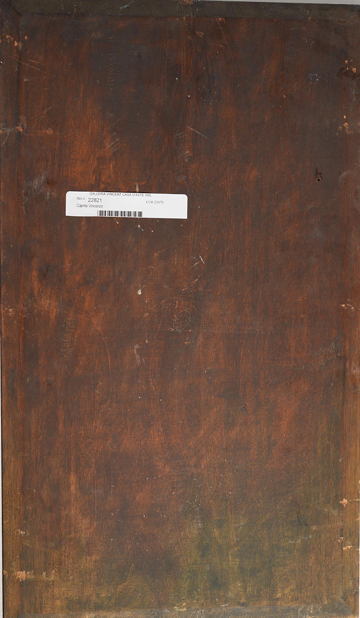 Caprile Vincenzo (Napoli 1856 - 1936) Il nonno e la nipotina olio su tavola, cm 53x31 firmato, datato e dedicato in alto: V. Caprile in segno di stima alla Sig.rina .... Monteforte 1877