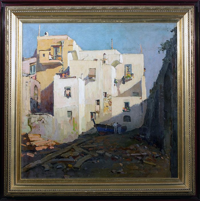 De Corsi Nicolas (Odessa, 1882 - Napoli, 1955) Paesaggio olio su tela, cm 70x70 firmato in basso a sinistra: De Corsi