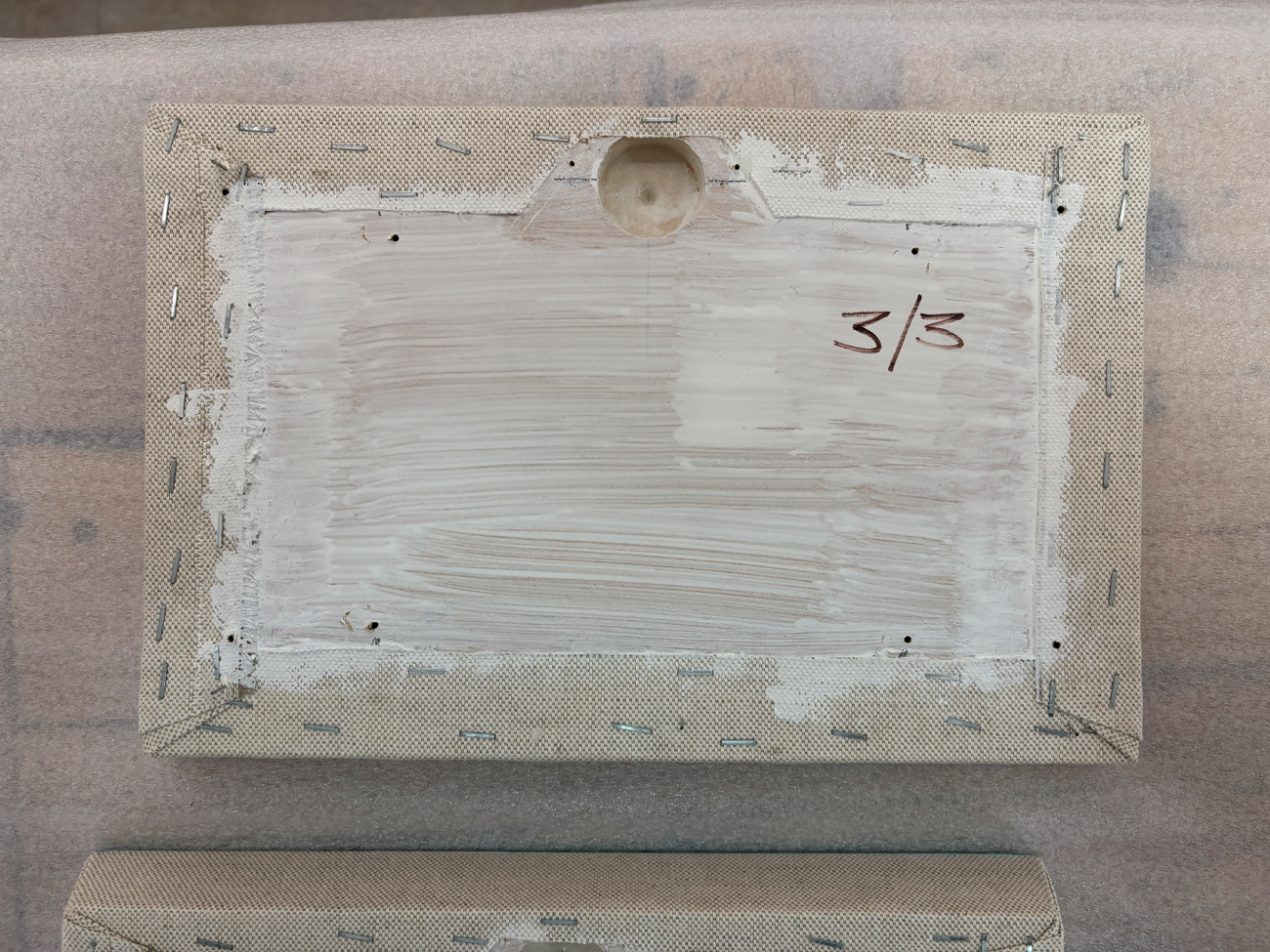 Polimero e acrilico su tre tele di lino applicate su tavole sagomate