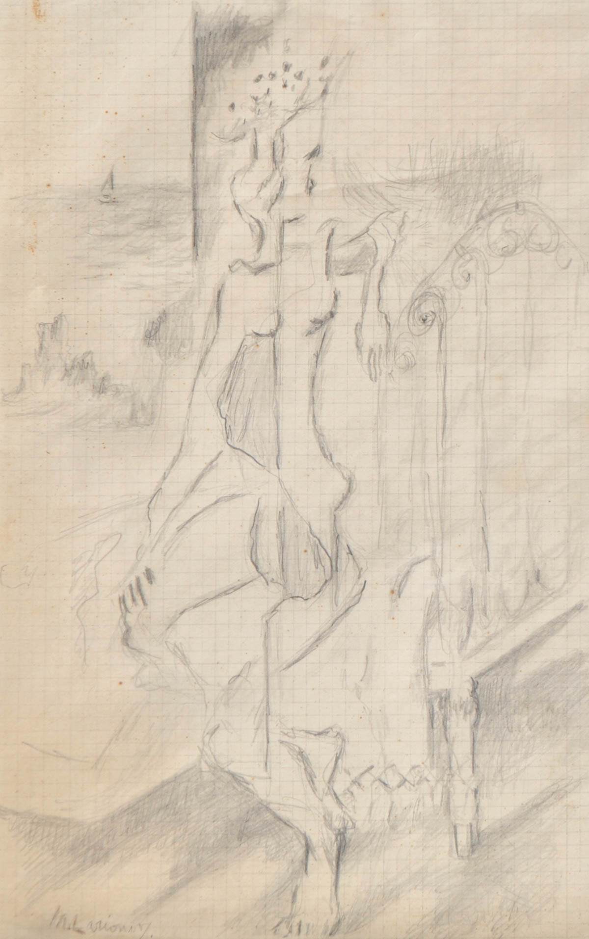 Michail Lairanov (Tiraspol 1881 - Fontenay-aux-Roses 1964) Ragazza davanti alla finestra, 1920 ca.;Matita su carta a quadretti, 29,2 x 18,4 cm