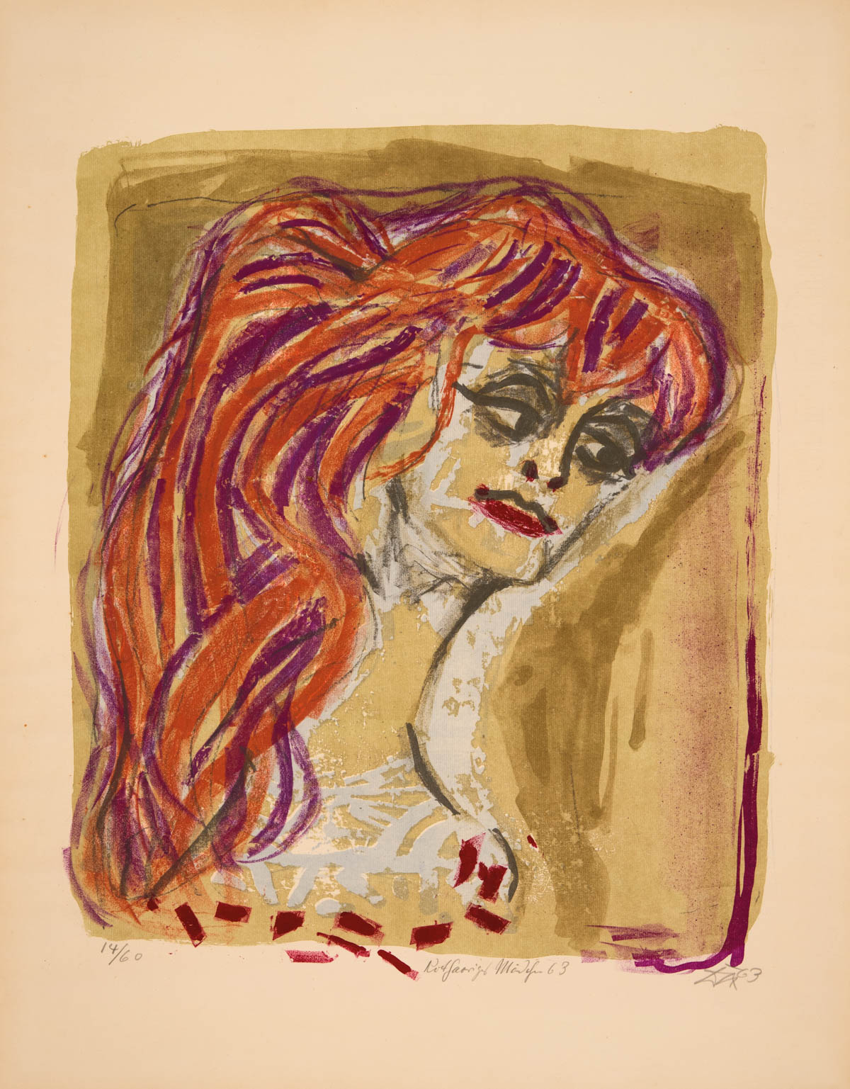 Otto Dix (Gera 1891 - Singen 1969) Rothaariges Mädchen, 1963;Litografia a col. su carta Van Gelder Zonnen, 69 x 55 cm