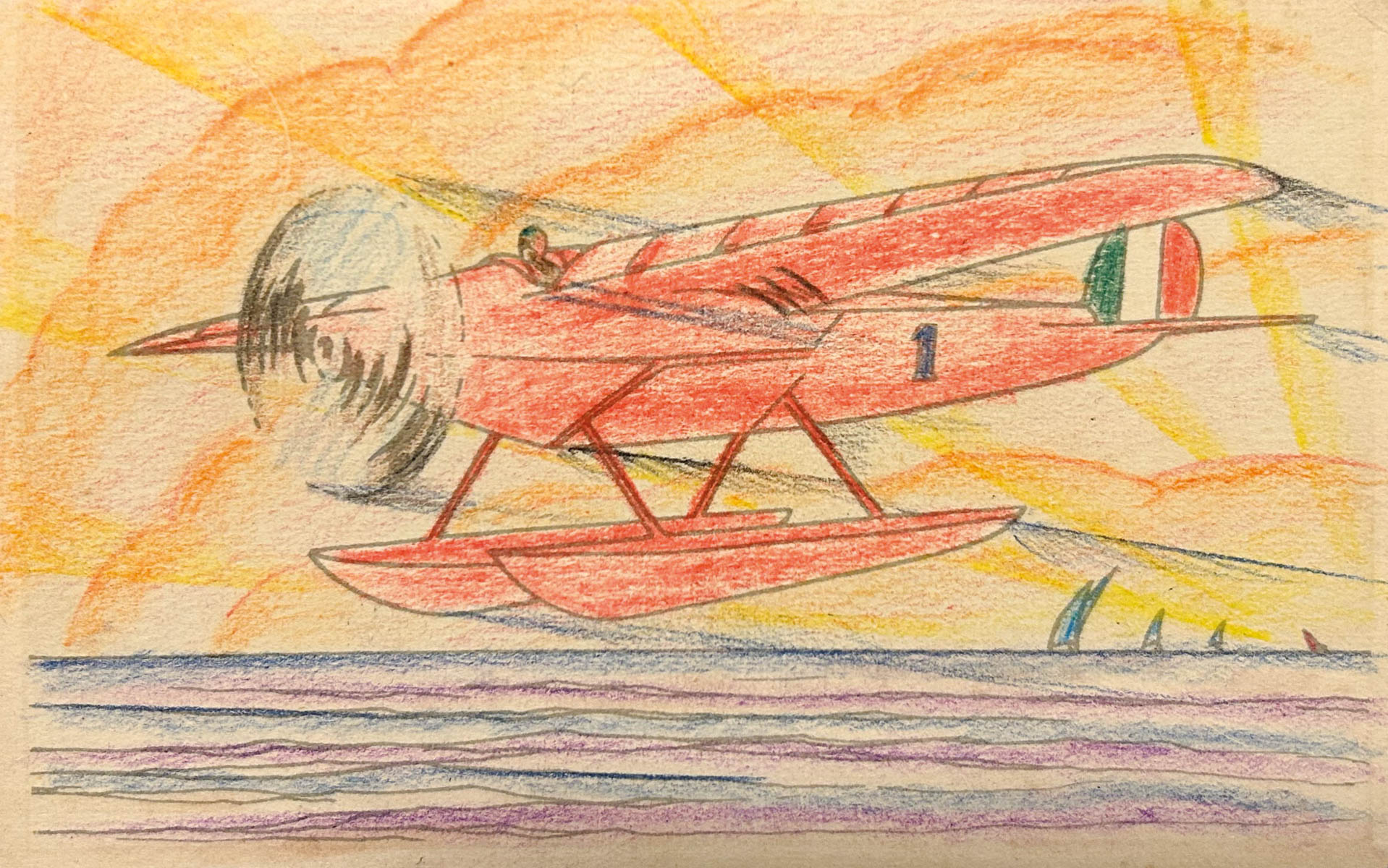 Ivanhoe Gambini (Busto Arsizio 1904 - 1982) Record di Agello, Anni '30;Matite colorate, 9 x 14 cm, disegno su cartolina della serie "Excelsior per dipingere"