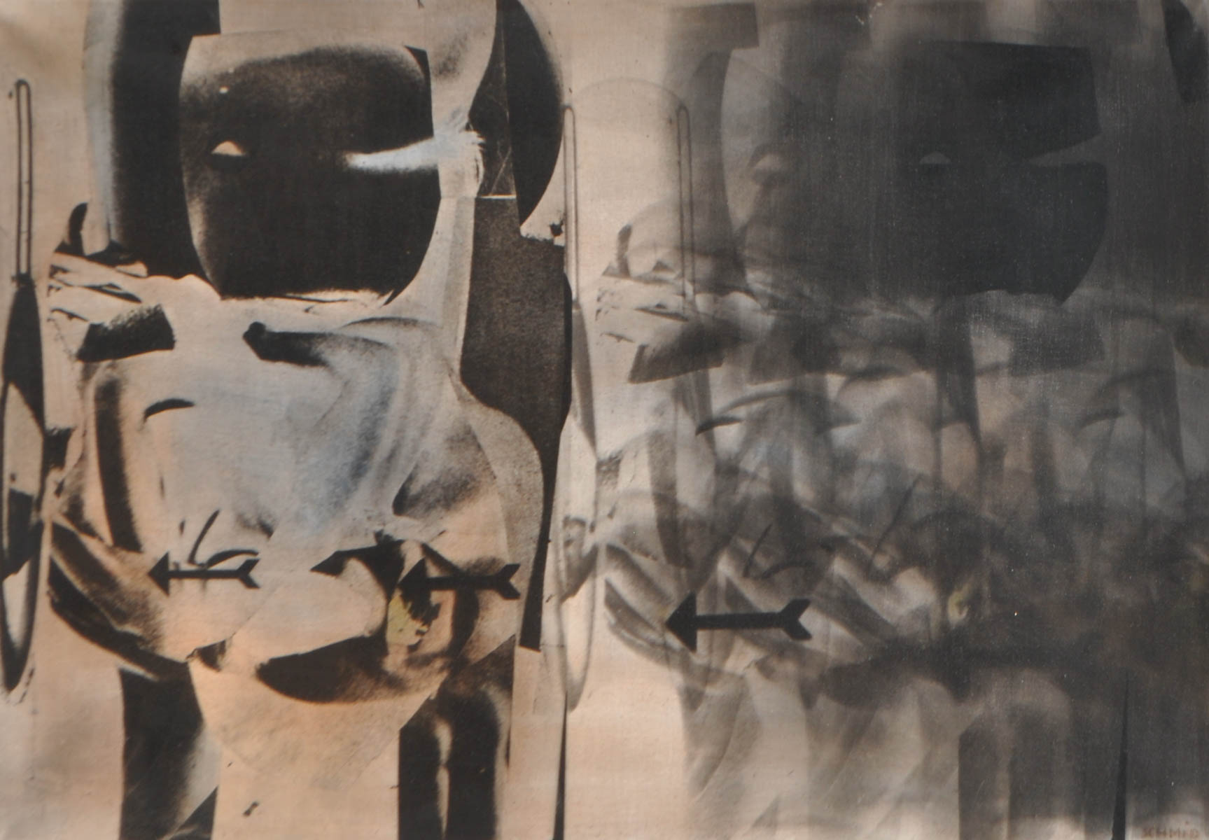 Aldo Schmid (Trient/Trento 1935 - Rom/Roma 1978) Sintomo di sequenza psico-fisica, 1965;Tecnica mista su tela, al retro etichetta "Galleria del Cavallino Venezia