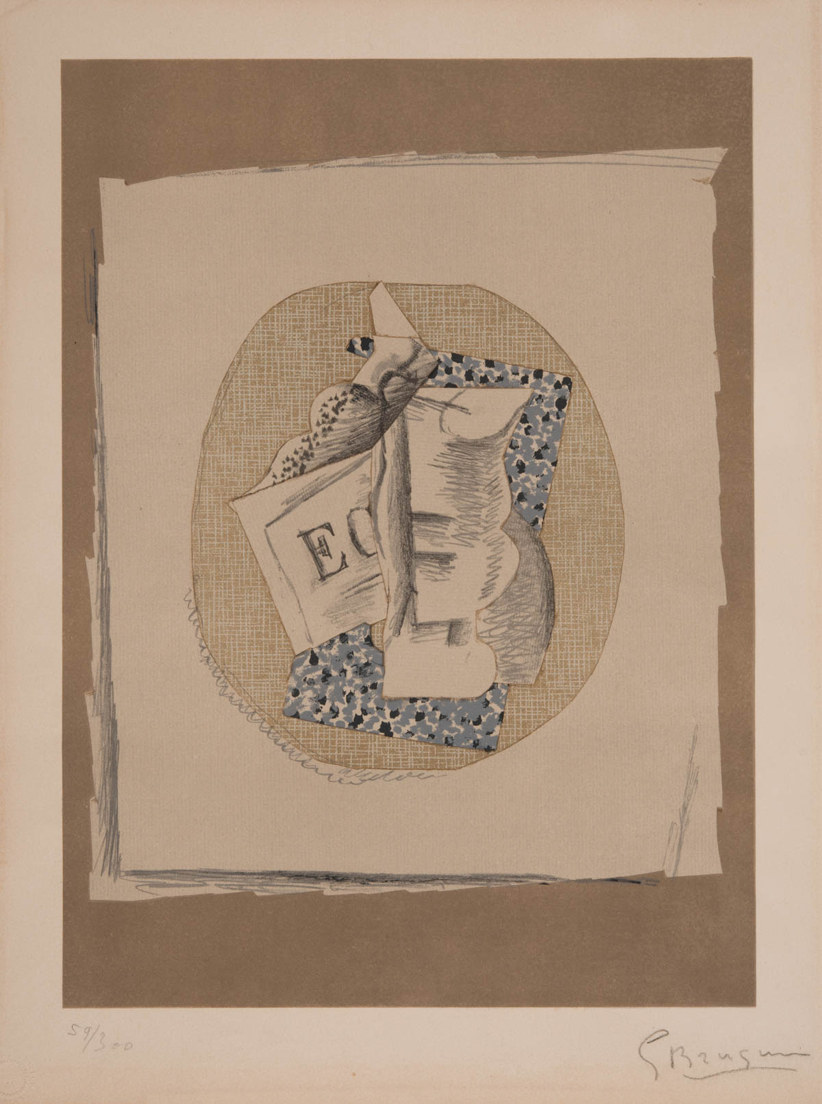 George Braque (1882 - 1963) Verre et Journal, 1963;Litografia a col. su carta, 44 x 33 cm,