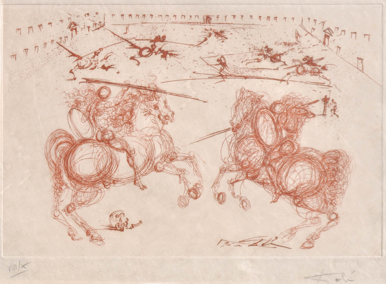 Salvador Dalì Combattimento dei cavalieri;Aquatinta auf Papier, 28,5 x 38 cm