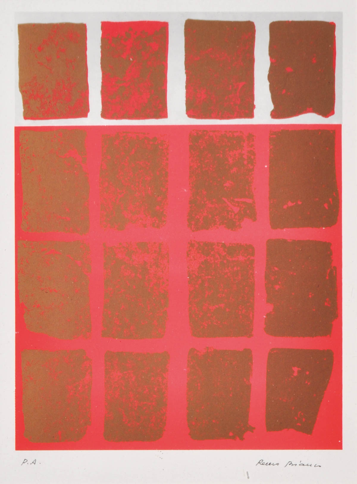 Remo Bianco (Mailand/Milano 1922 - 1988) Tableaux dorés, 1987;Lithografie auf Papier, 15,5 x 10 cm, auf der Rückseite gedruckter Text für die Einladung zur Eröffnung der Ausstellung "Drapeaux - Bandiere" in der "Galerie Lara Vincy Paris" 1987