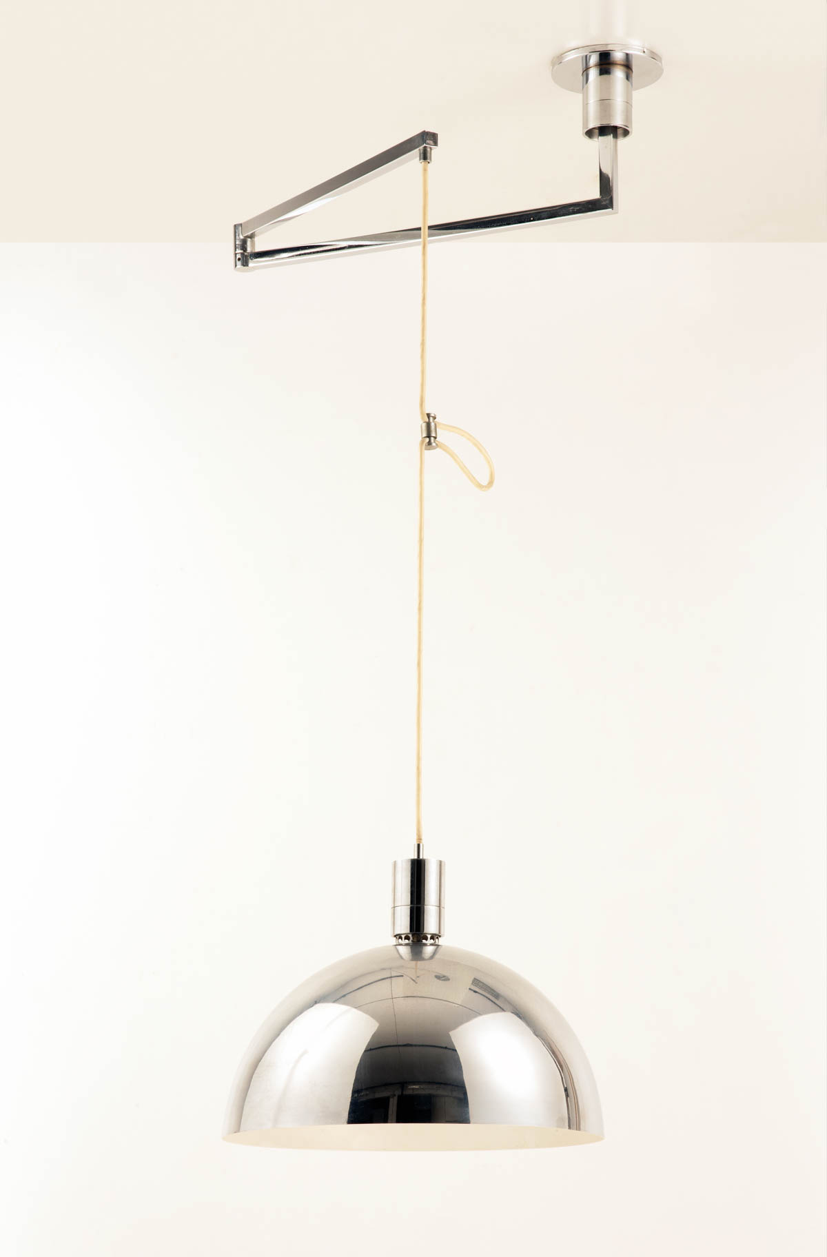 Franco Albini (zugechrieben/attribuito) Lampada da sospensione modello AS41Z;Struttura in metallo cromato, braccio girevole e snodato in acciaio