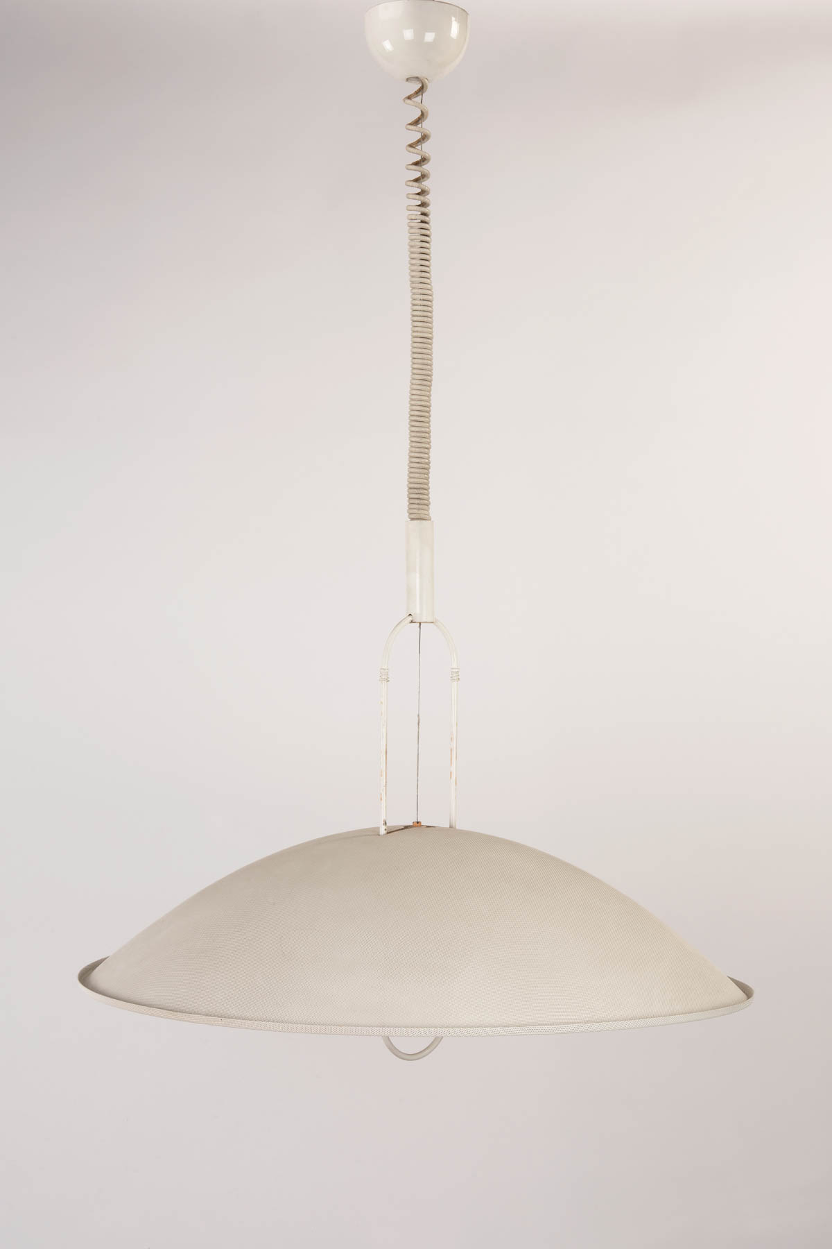Ernesto Gismondi Lampada Macumba, Anni ‘70;Lamiera traforata, h. 88 cm, diametro 81 cm, produzione Artemide