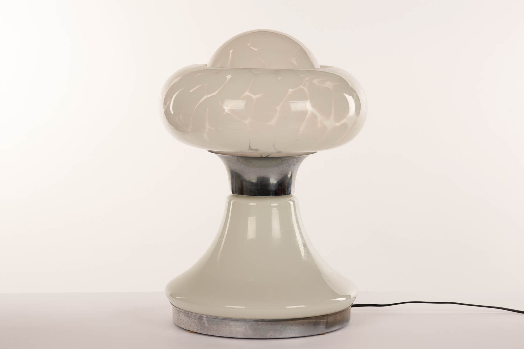 Carlo Nason (zugeschrieben/attribuito) Lampada da tavolo a fungo, anni ‘70;Vetro opalino e metallo cromato, h. 60 x 40 cm,
