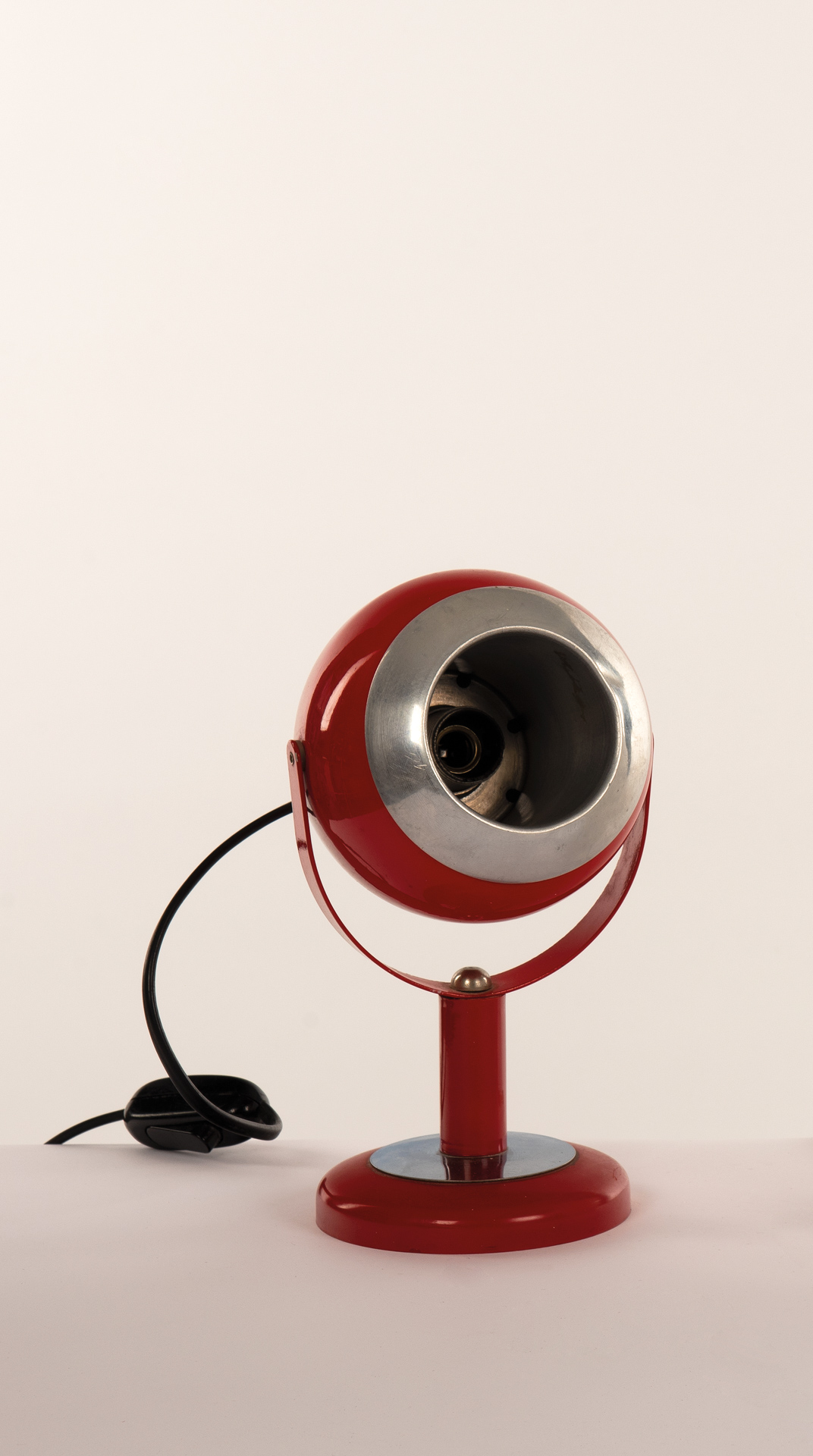 Italienische Manufaktur/Manifattura italiana Lampada da tavolo, anni ‘70;Metallo colorato, cromo, h. 24 cm, base diam. 11 cm