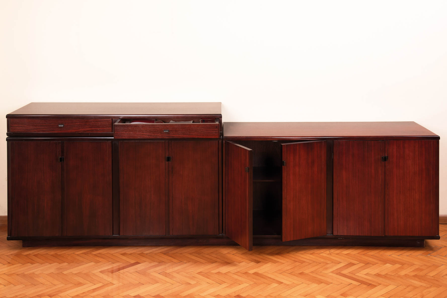 Claudio Salocchi Sideboard, anni ‘60; 2 moduli in legno, 4 ante e cassetti...