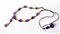 Dodici ametiste taglio briolette a scalare da 20 mm a 25.5 mm, intervallate da altrettanti segmenti in oro 22 Kt. Allacciatura in tessuto intrecciato viola e oro.