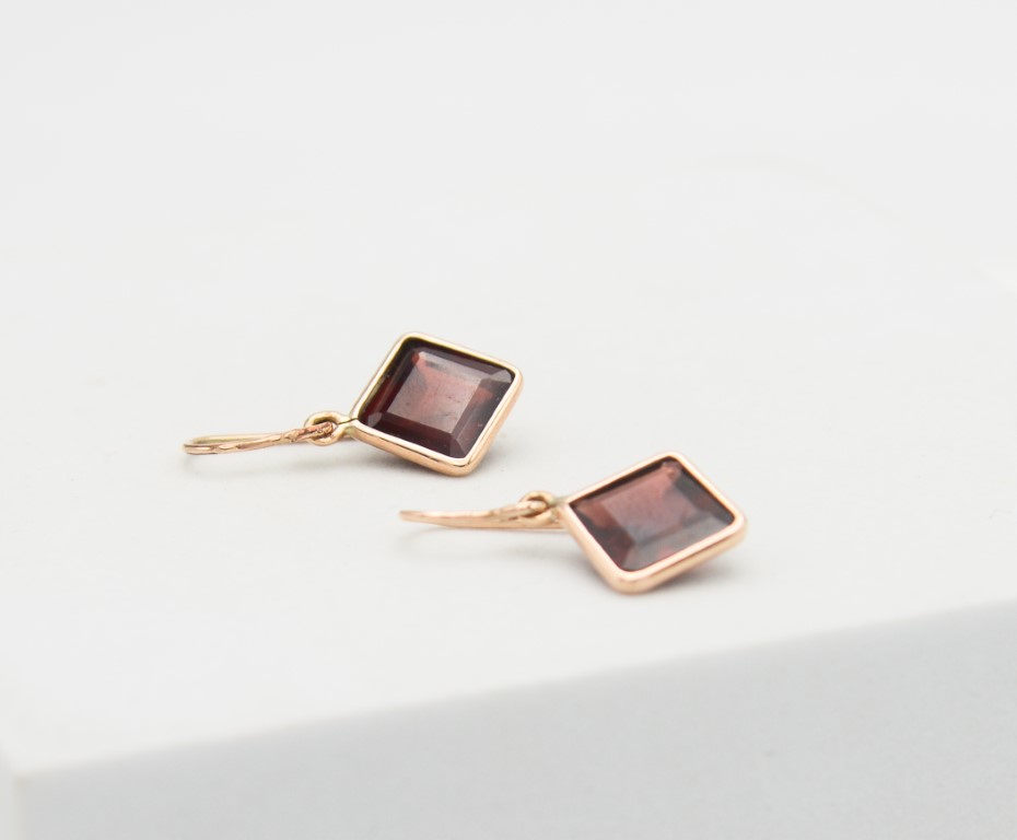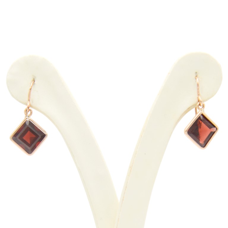 Orecchini in oro giallo 9 kt e due granati