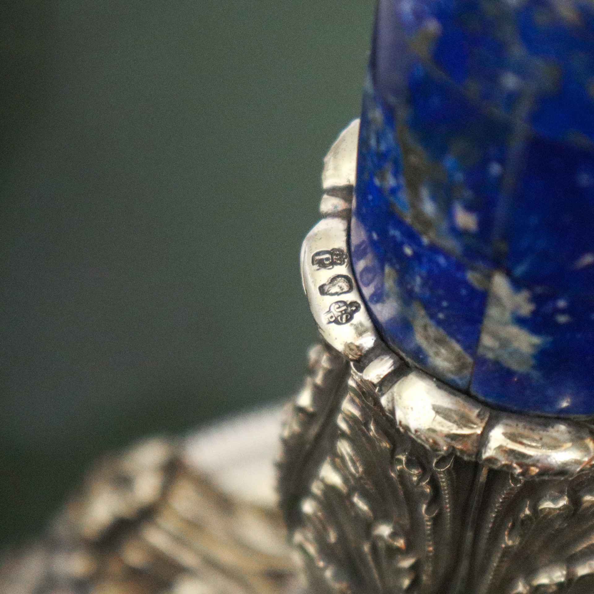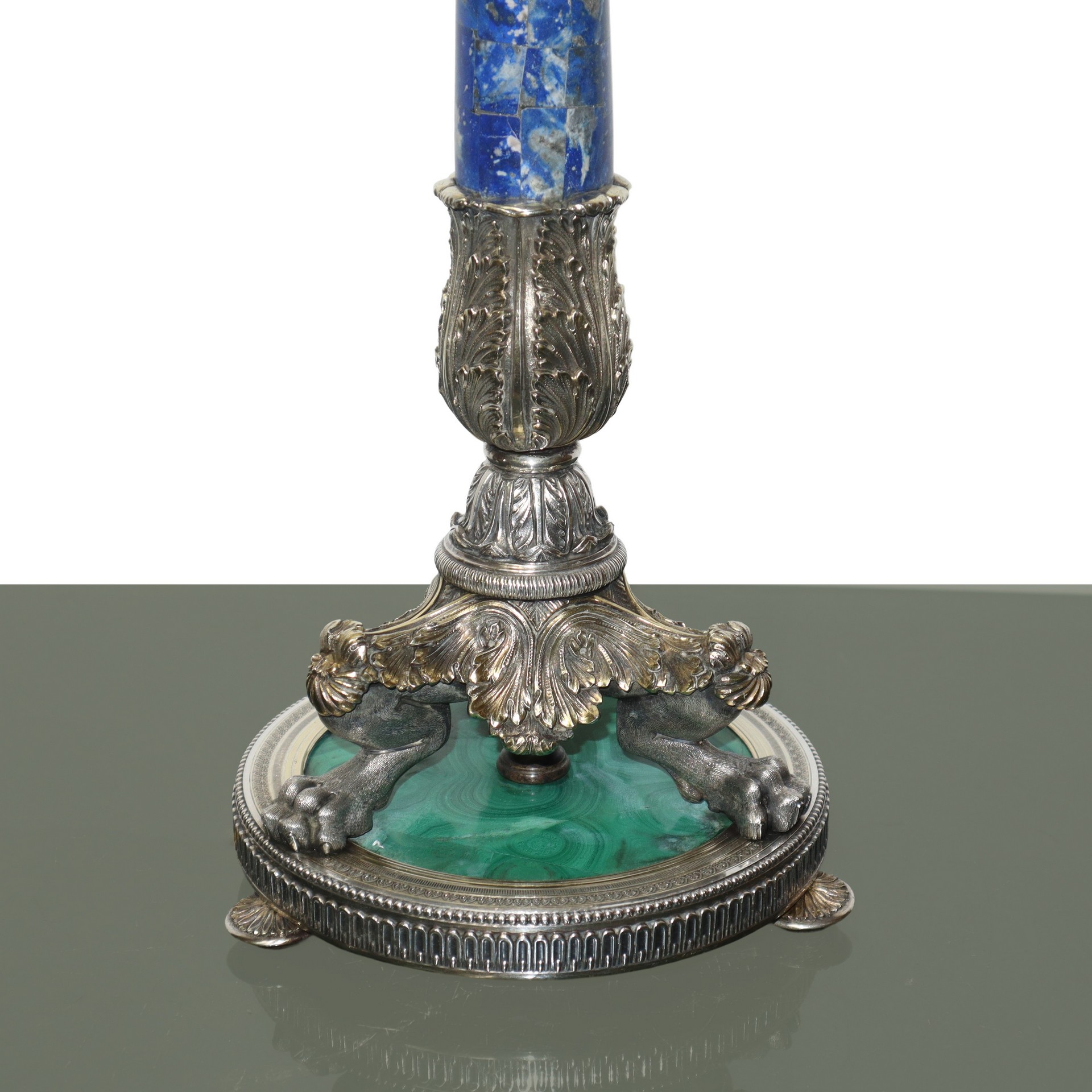 Lotto 1 | Importante lampada da tavolo in argento con parti dorate, in malachite, lapislazzuli. Presenti punzoni