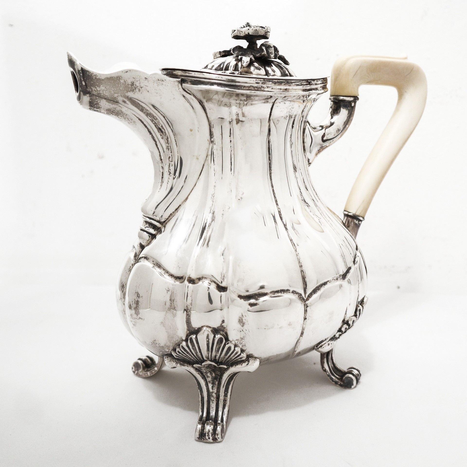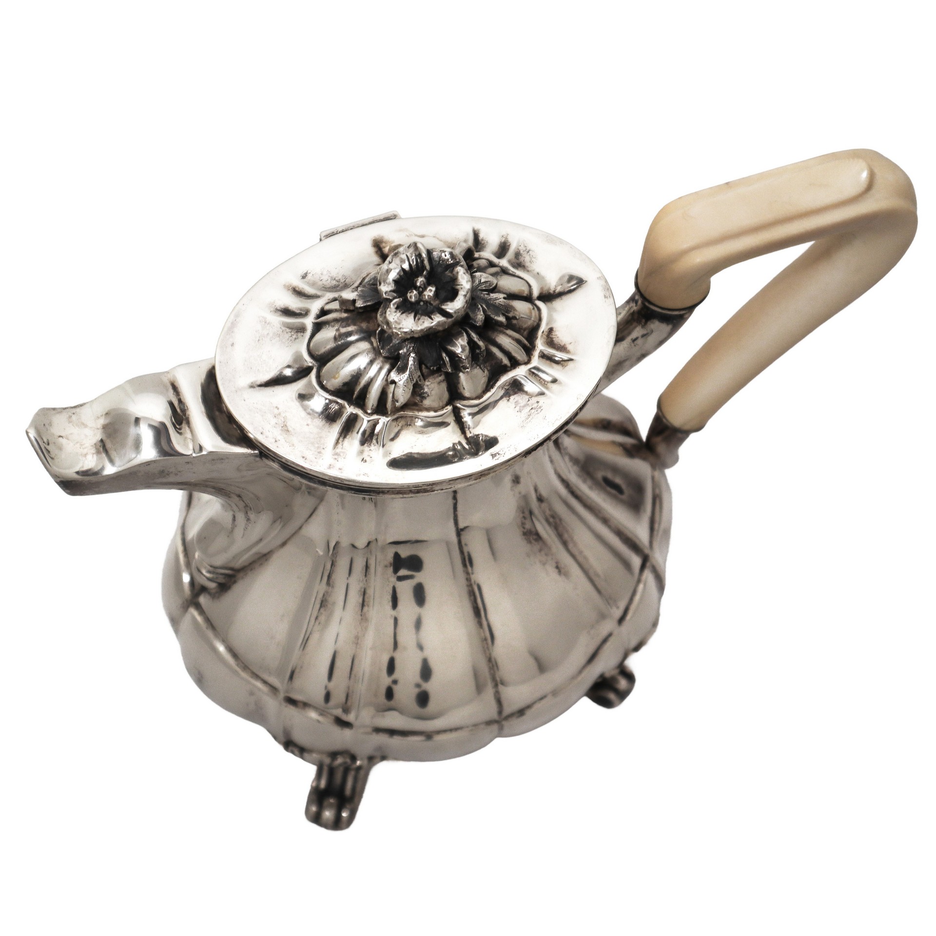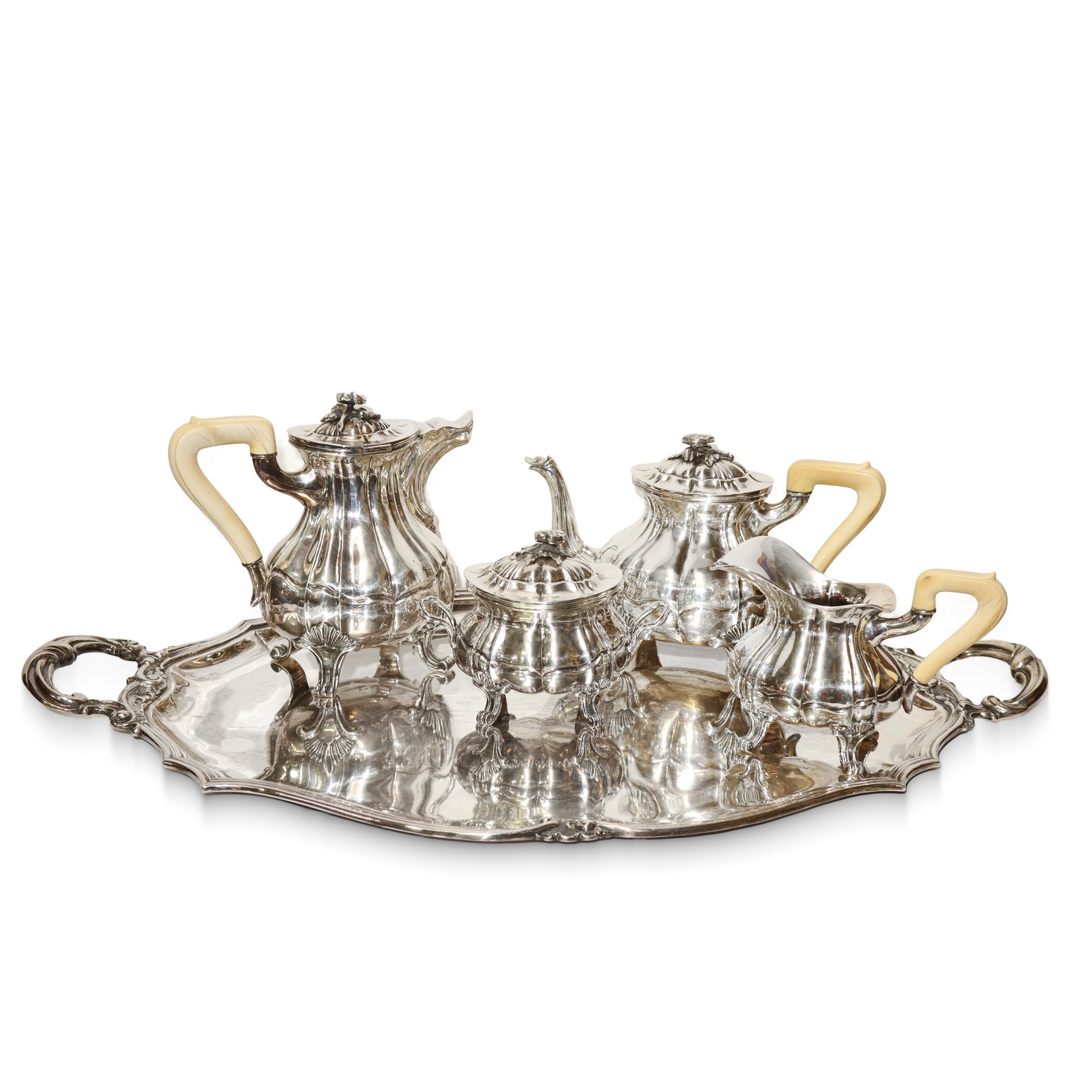 Lotto 16 | Servizio in argento 800 composto da: caffettiera, teiera, lattiera, zuccheriera e grande vassoio con manici