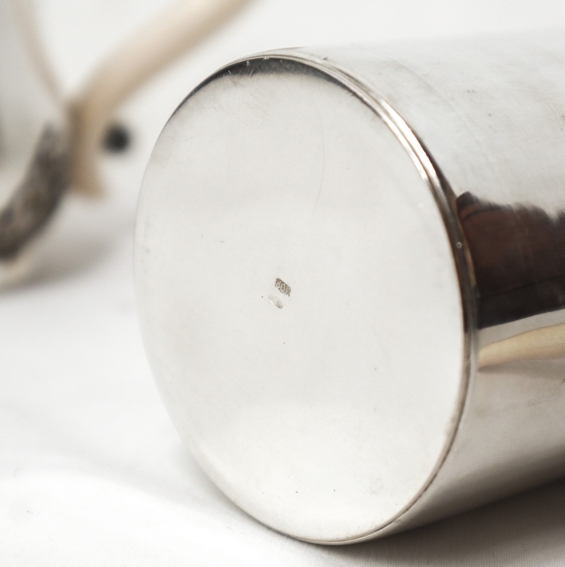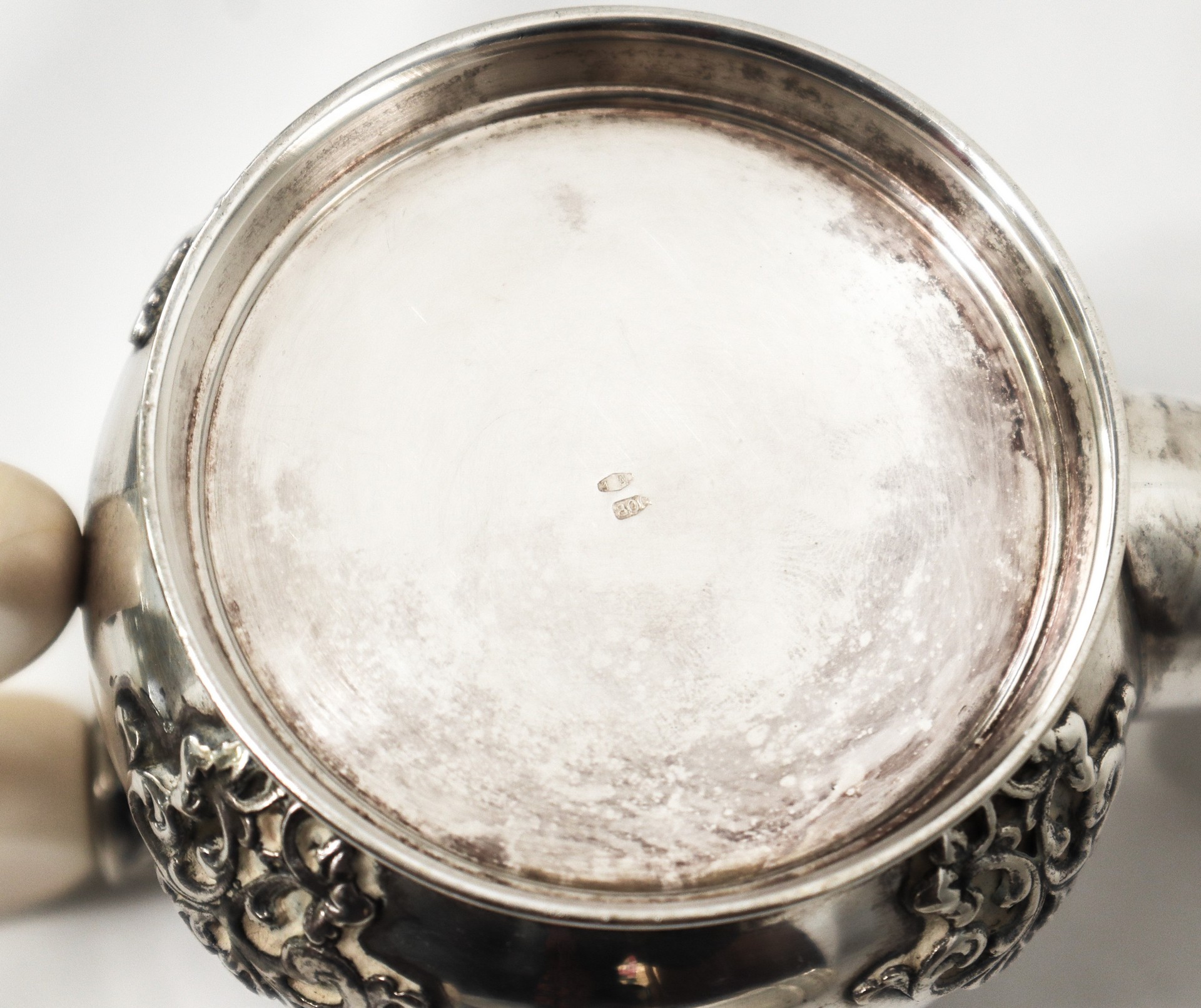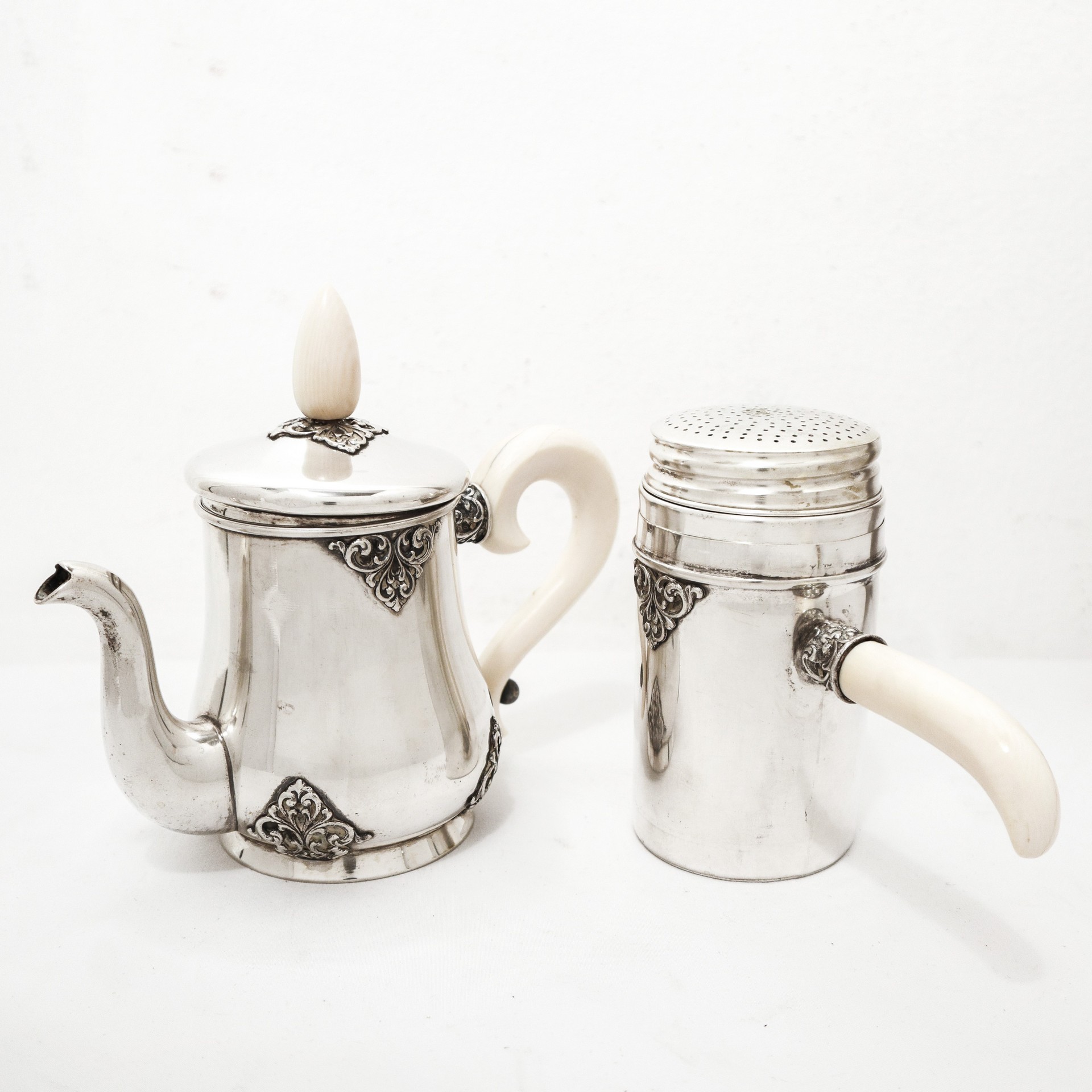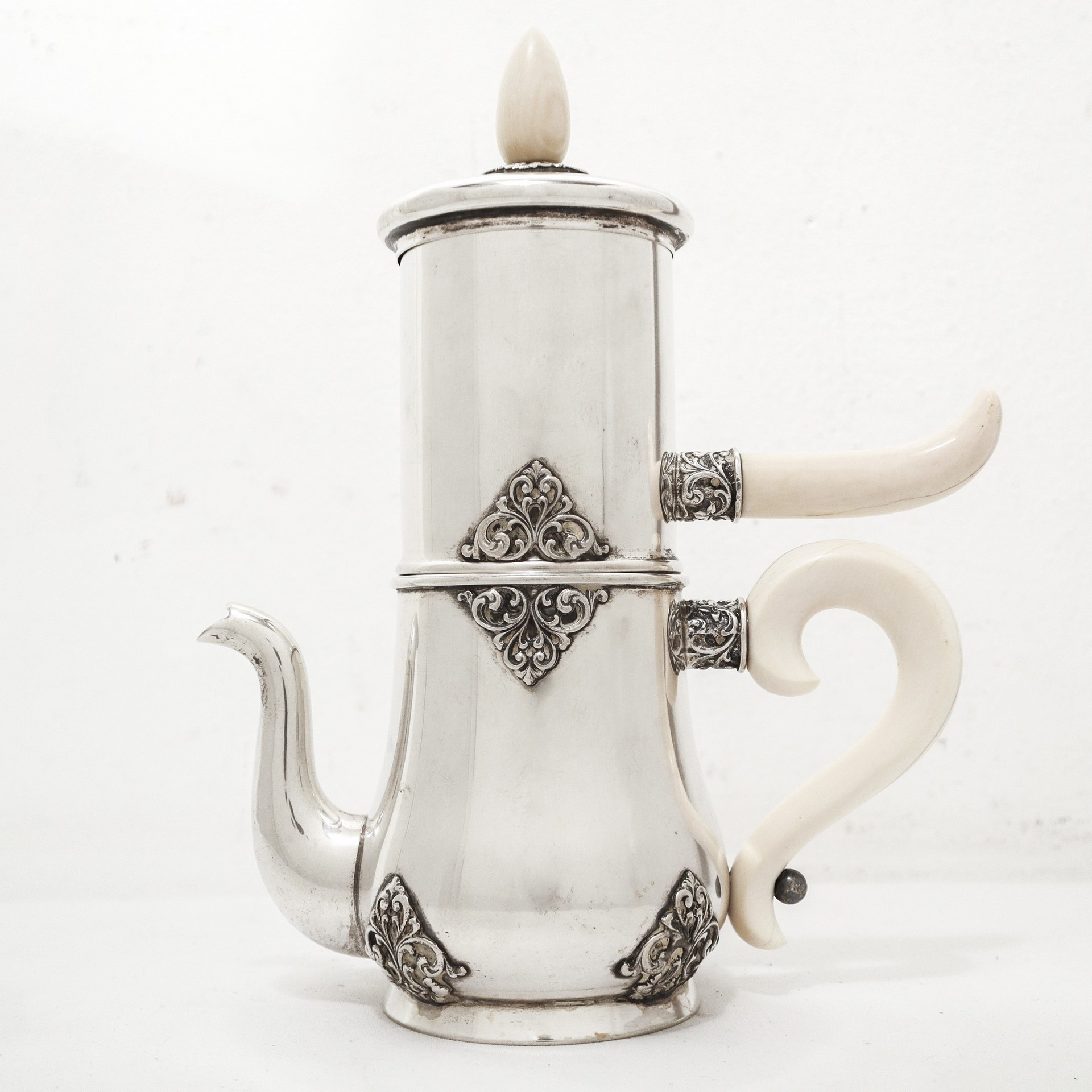 Lotto 17 | Caffettiera alla napoletana in argento 800 riporti in osso e decori floreali a rilievo