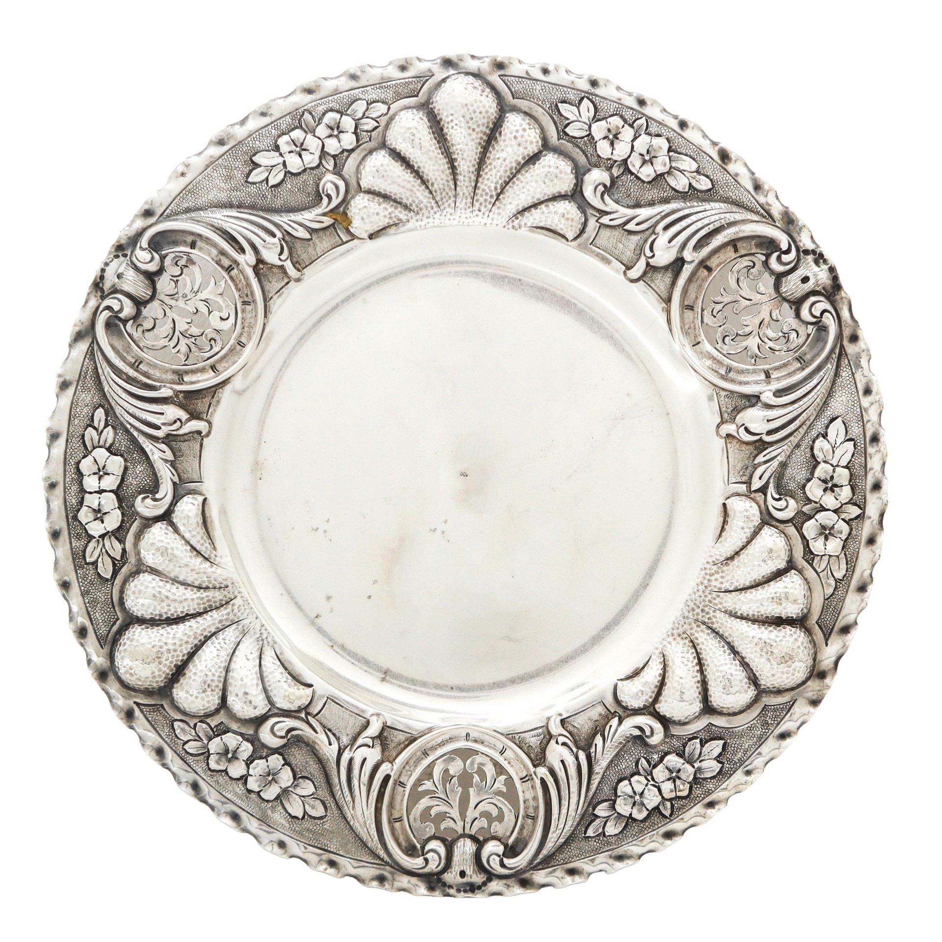 Lotto 21 | Piatto centrotavola in argento 800 con bordo sbalzato e decorato