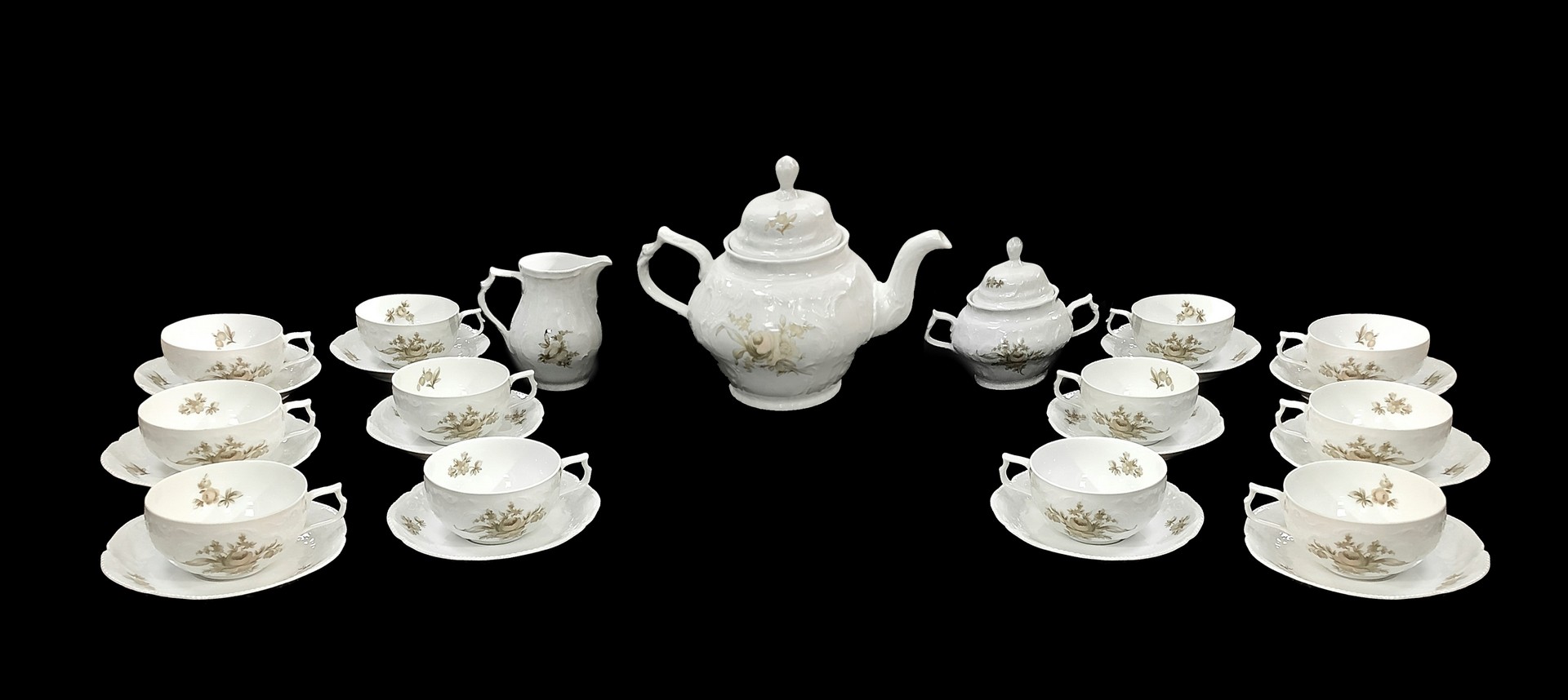 Rosenthal (1879) - Servizio da the Sanssouci 'Brown Rose', 1960s Composto da 12 tazze con piattini, teiera,lattiera e zuccheriera.