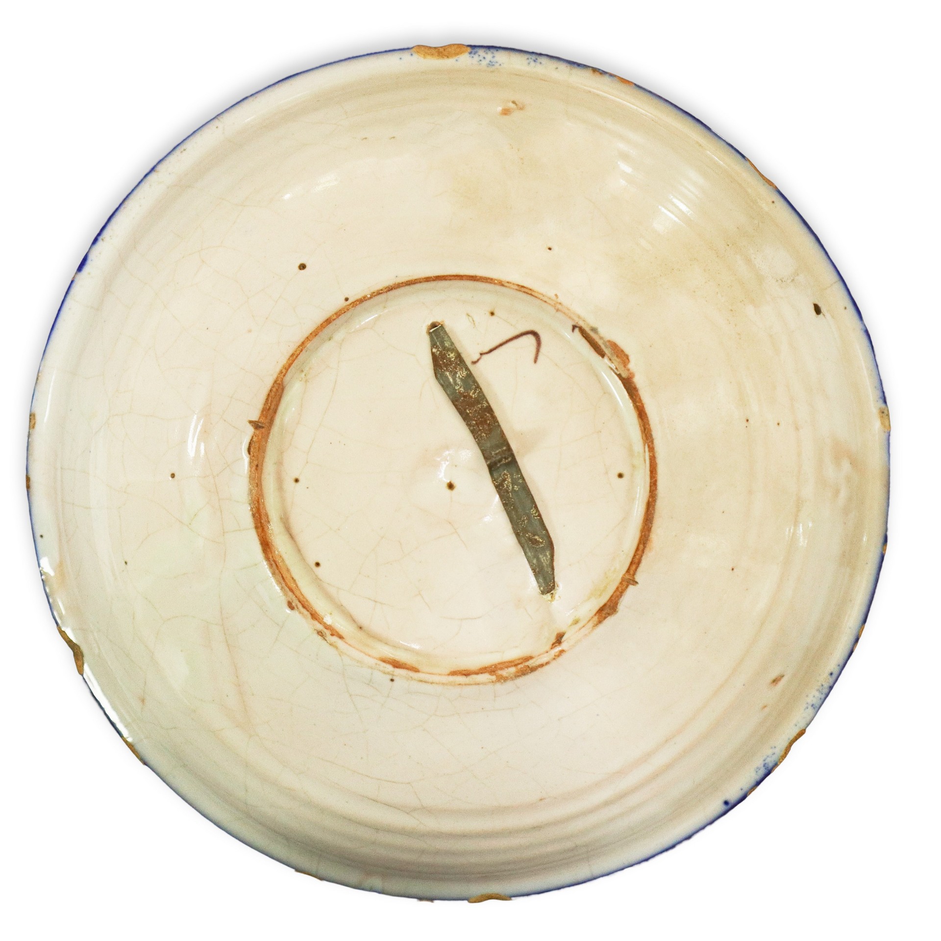Piatto in ceramica di Talavera/Manises dipinto policromo con uccello giallo dipinto sul fronte h cm 6 diametro cm 23,5