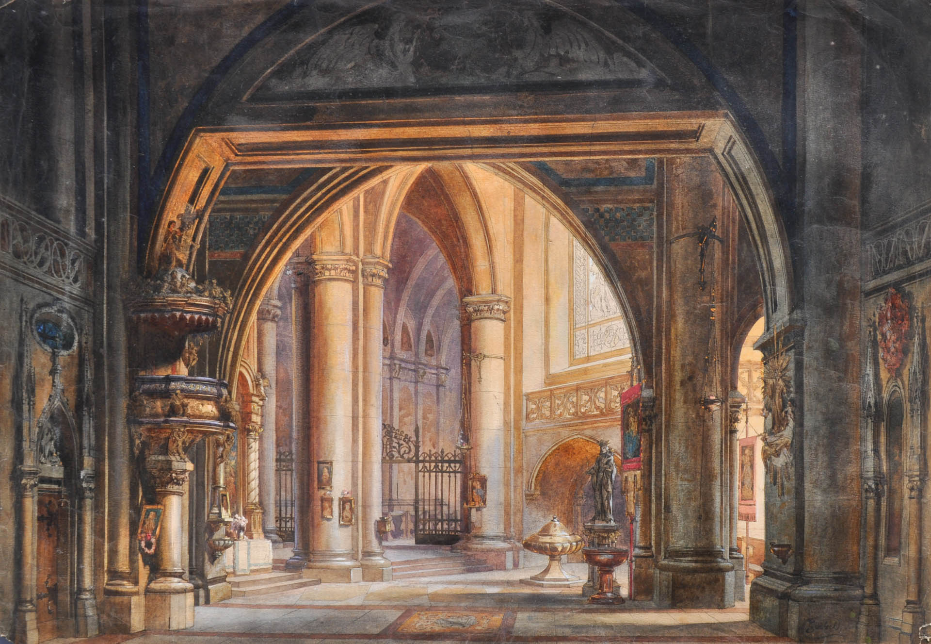 Lotto 314 | Carl Goebel (Wien/Vienna 1824 - 1899) Interno di una chiesa gotica;Acquerello...