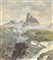 Josef von Schlögl (Wien/Vienna 1841 - Meran/Merano 1918) Vista sulle Tre Cime e sul Paterno nella Val d’Ampezzo, 1917;Olio su tela, 53 x 46,5 cm, piccoli ritocchi, in cornice
