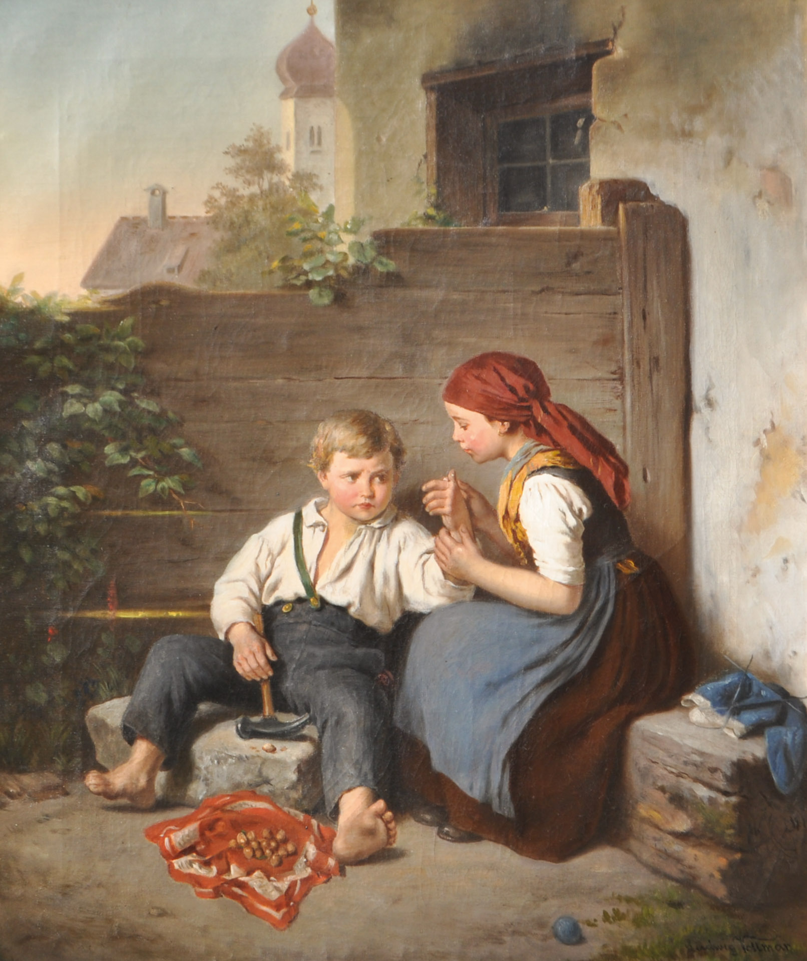 Ludwig Vollmar (Säckingen 1842 - München/Monaco di Baviera 1884) La consolazione;Olio su tela, 63 x 52 cm, piccoli restauri, in cornice