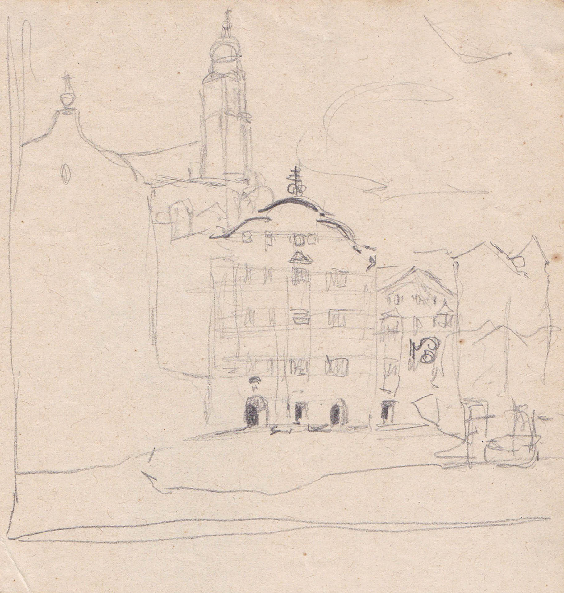 Artur Nikodem (Trient/Trento 1870 - Innsbruck 1940) Hall in Tirolo, 1910/20 ca.;Matita, 12,5 x 11,7 cm