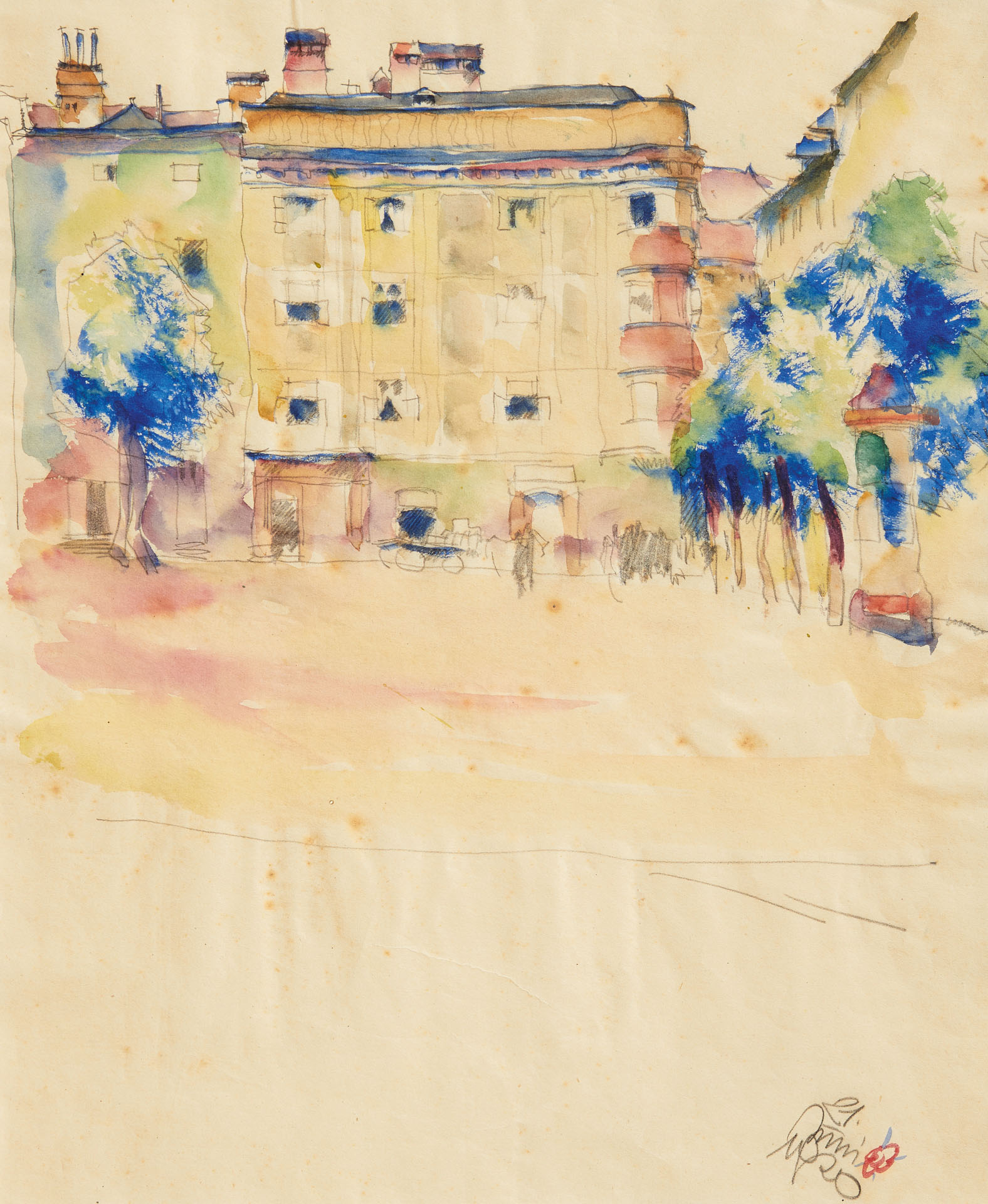 Wilhelm Nicolaus Prachensky (Innsbruck 1898 - 1956) Veduta della città, 1920;Acquerello e matita, 30 x 25 cm, lievi macchie di muffa,