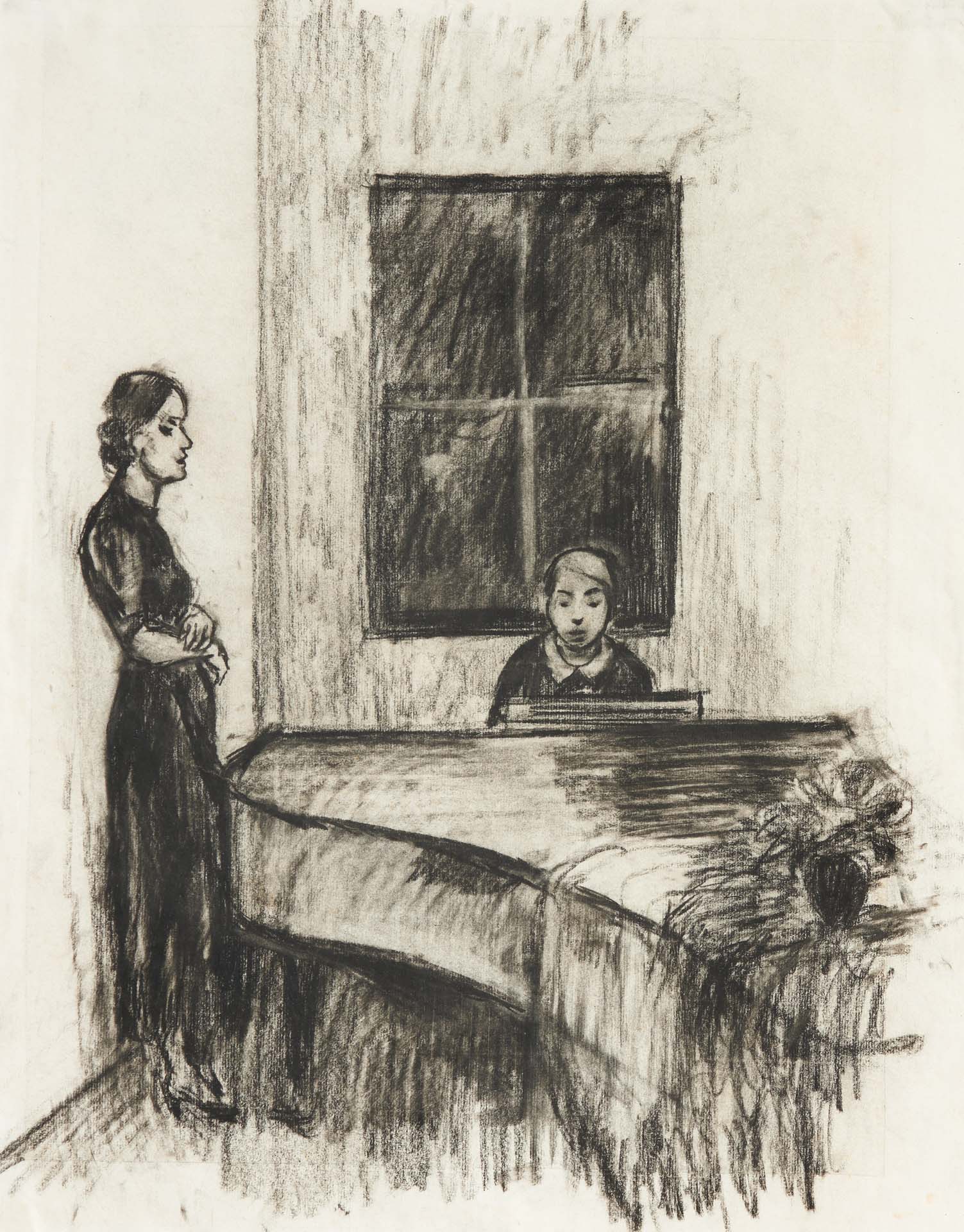 Sepp Orgler (Wörgl 1911 - gefallen bei Orel, Russland/caduto presso Orel/Russia 1943) Al pianoforte, 1939;Gessetti neri, 55 x 43 cm, in cornice