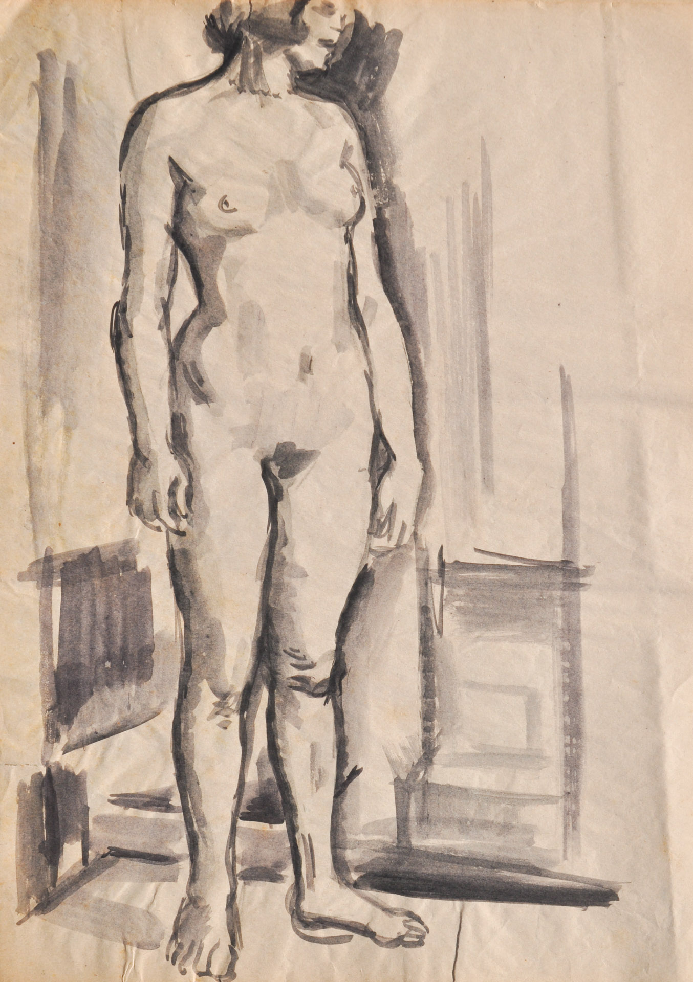 Christian Hess (Bozen/Bolzano 1895 - Schwaz 1944) Nudo in piedi, 1925 ca.;Acquerello, 46,5 x 33,7 cm, piccoli strappi laterali