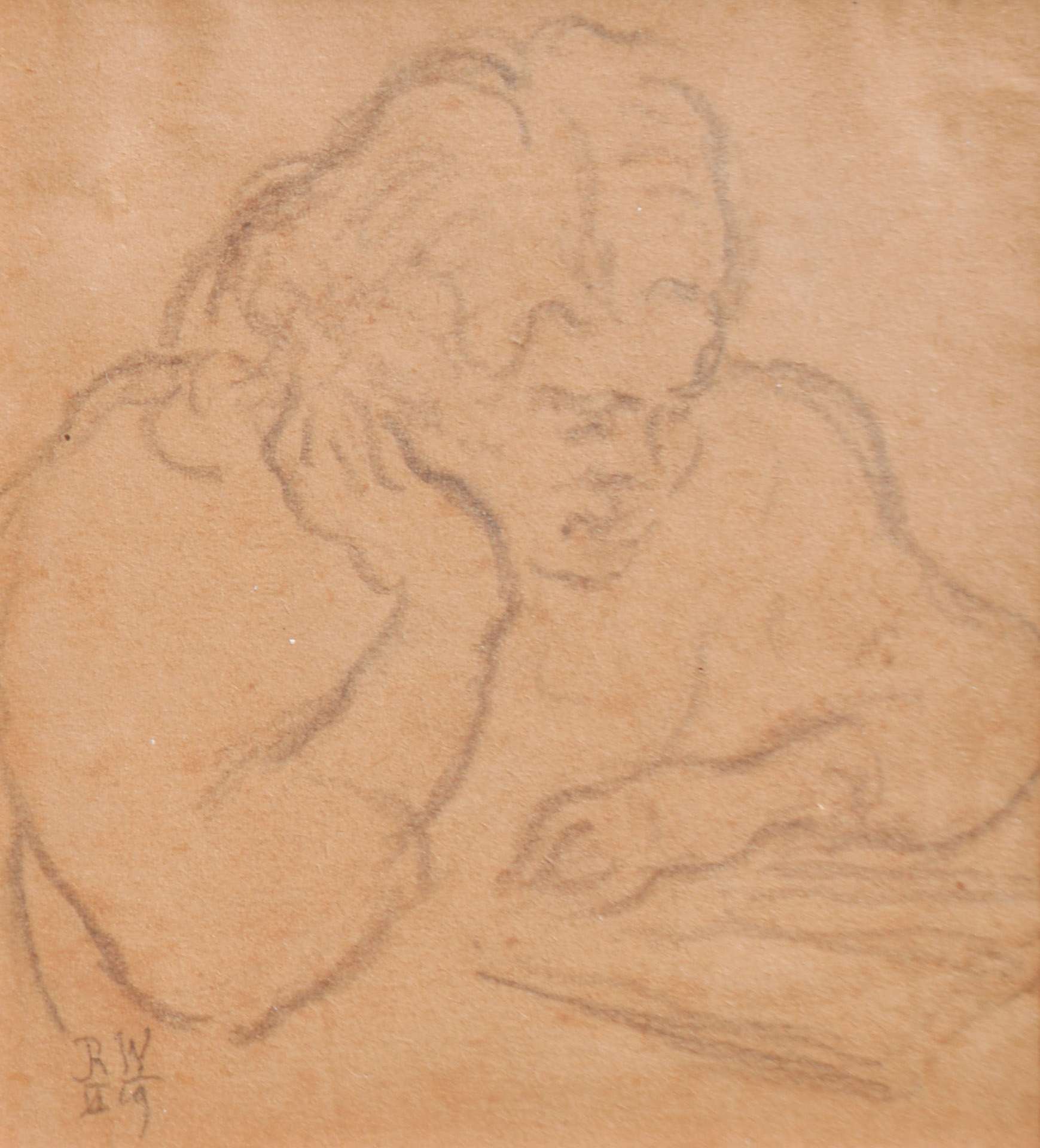 Rudolf Wacker (Bregenz 1893 - 1939 Bregenz) Donna che legge, 1919;Matita, 12 x 11 cm (entro il passepartout), in cornice