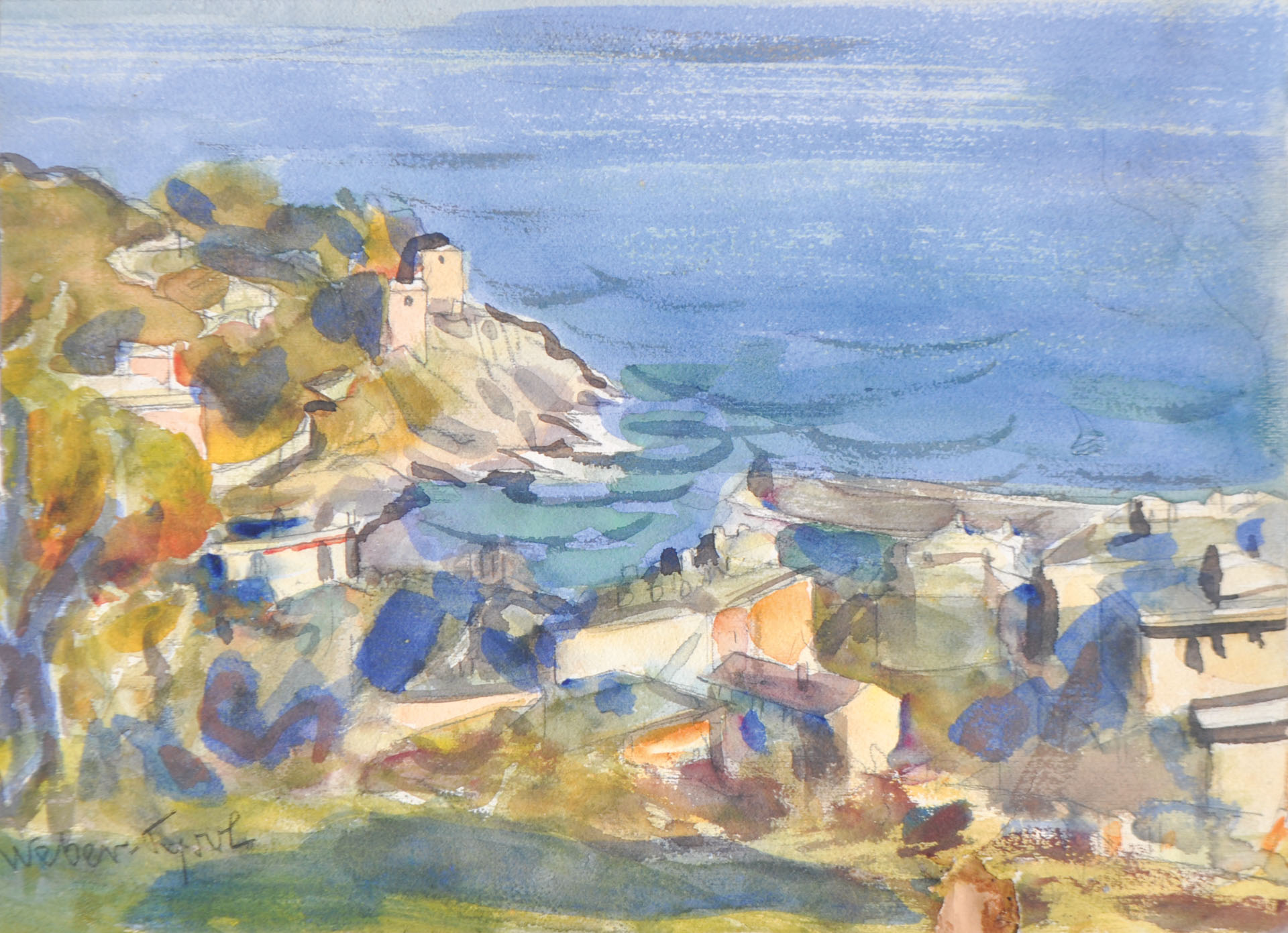 Hans Josef Weber-Tyrol (Schwaz 1874 - Meran/Merano 1957) Costa ligure;Acquerello, 26,5 x 34 cm, in cornice