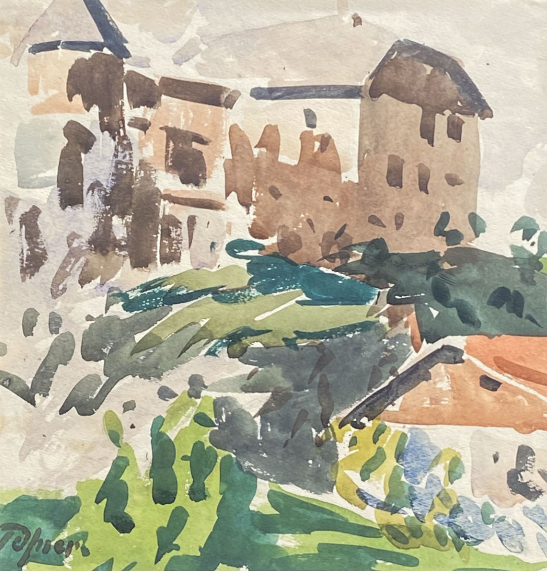 Josef Telfner Case nella Valle Isarco;Acquerello, 24 x 23,4 cm, in cornice Firma