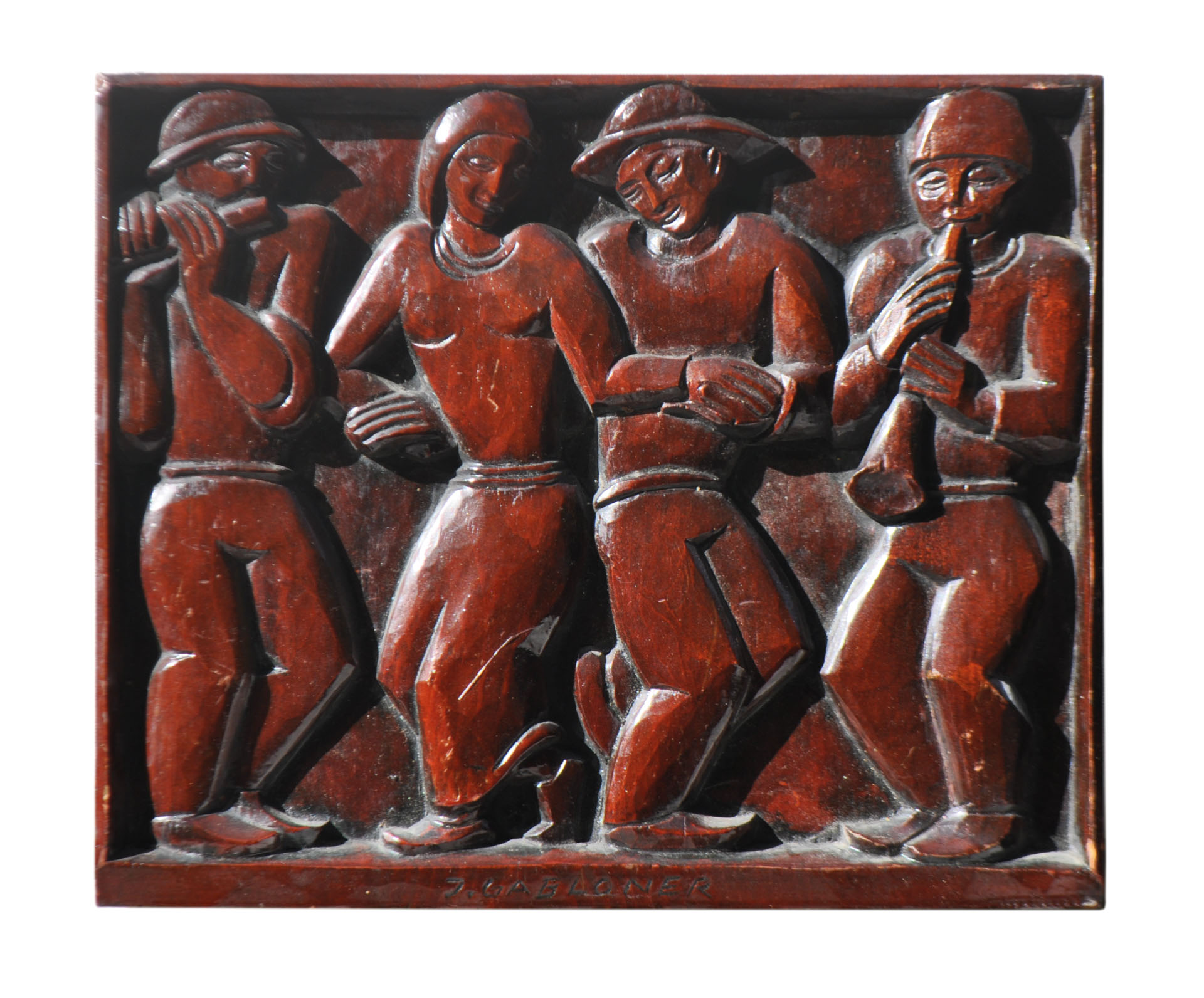 Ignaz Gabloner (Bozen/Bolzano 1887 - 1964) Danza contadina, 1927;Rilievo in legno, 20,5 x 24,7 cm