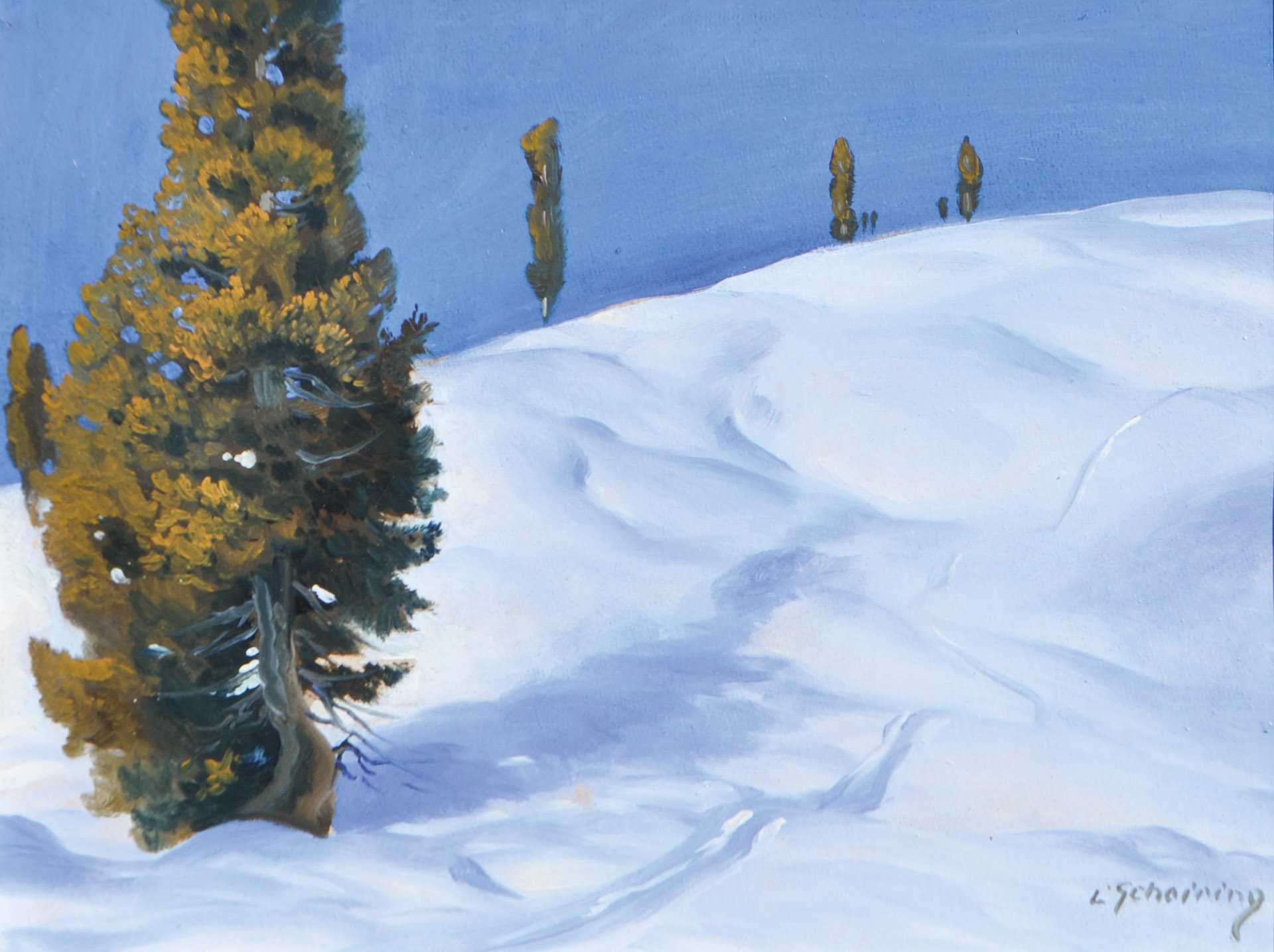 Leopold Scheiring (Nassereith 1884 - 1927) Paesaggio invernale tirolese;Olio...