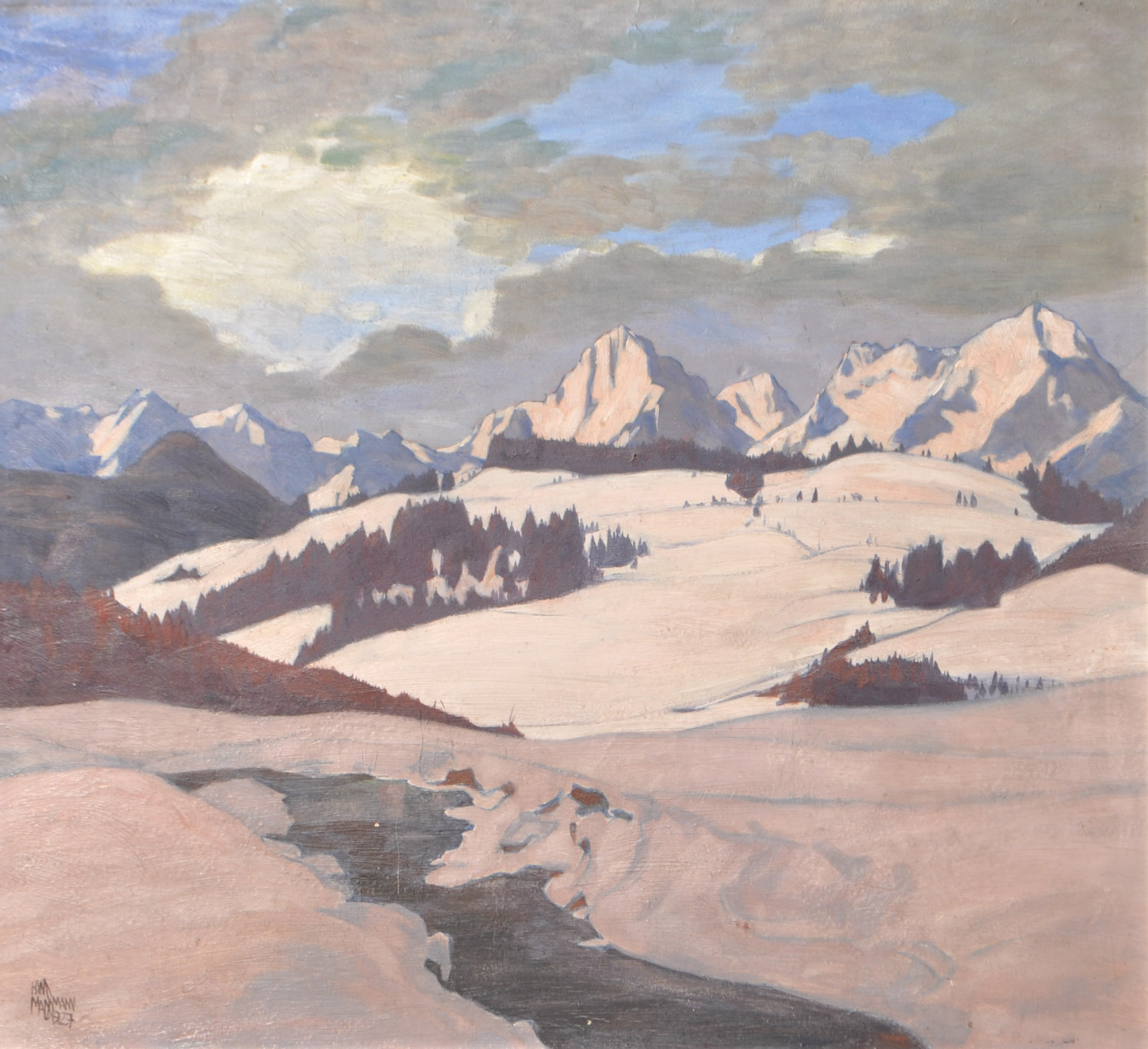 Hans Massmann (Bukarest 1887 - Wien/Vienna 1973) Altopiano alpino in inverno, 1927;Olio su cartone, 70 x 76 cm, in cornice