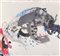 Peter Adrian Larcher (Bregenz 1955 - Innsbruck 2024) "Löwengeilbild" - Leone con donna in pelle alla moda, 1989;Tecnica mista su carta, 23,5 x 25 cm