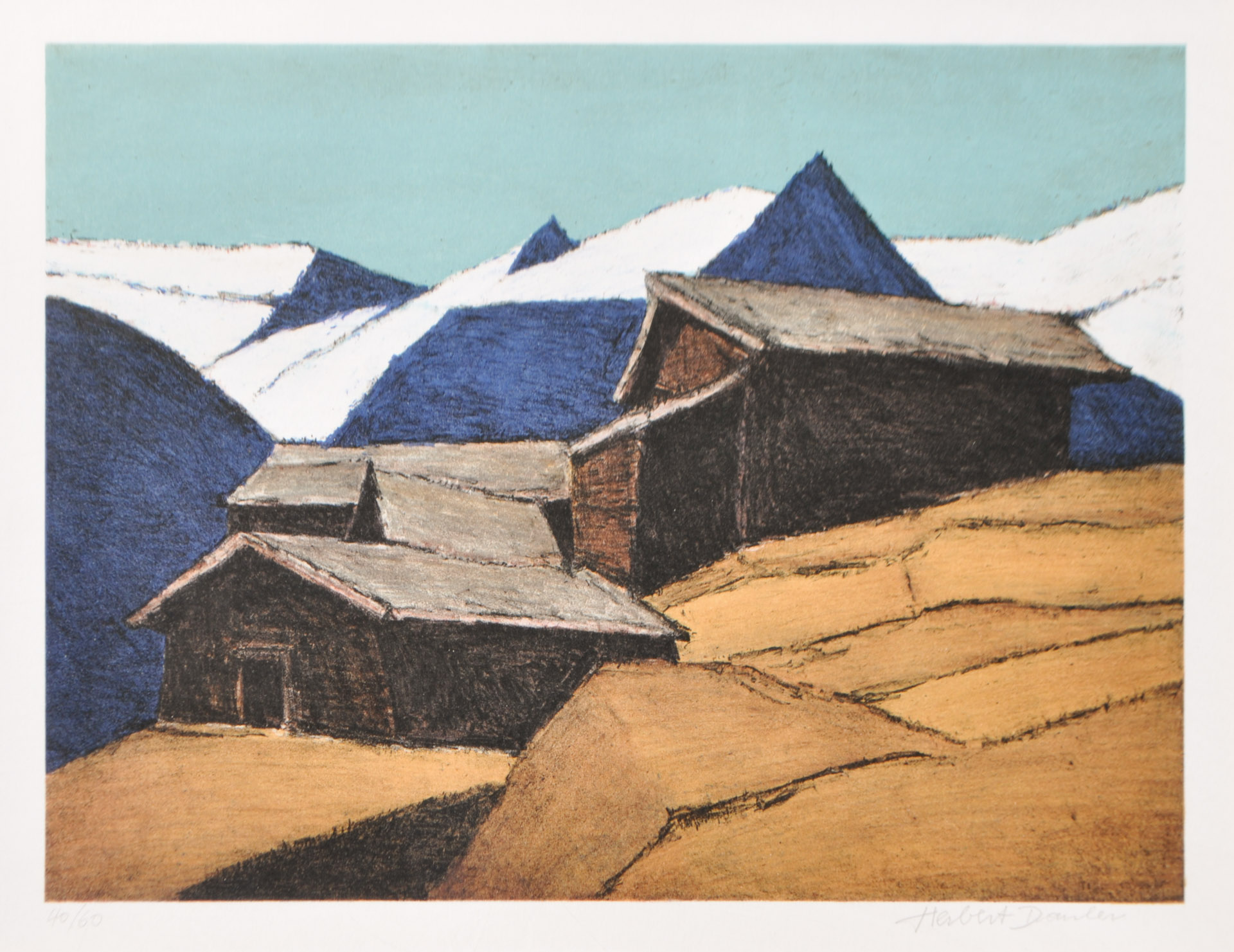 Herbert Danler (Fulpmes 1928 - Telfes im Stubaital 2011) Marchegg nella Val Senales, 2011;Litografia, 30 x 40 cm (immagine), in cornice