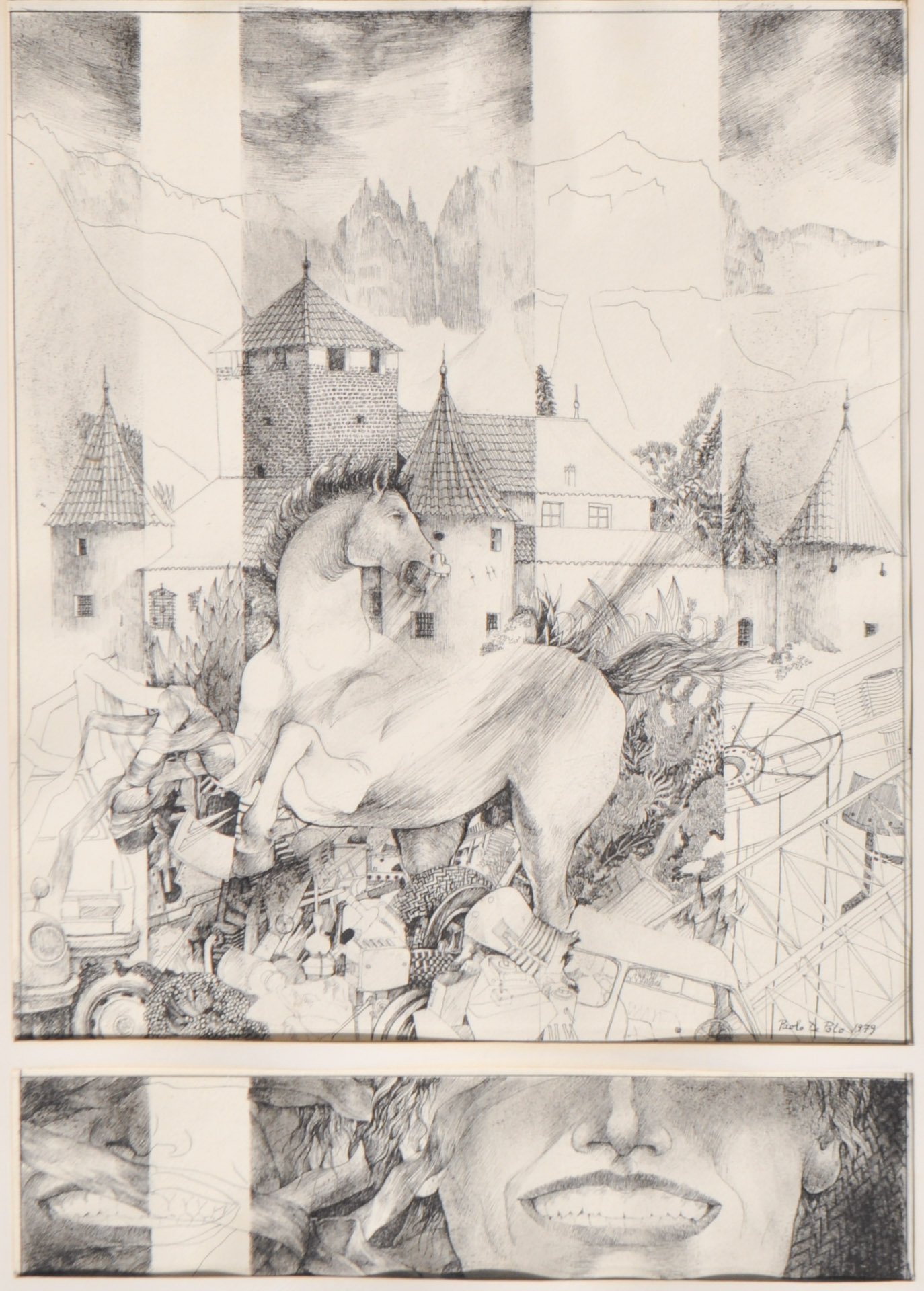 Paolo De Polo (Padua/Padova 1905 - 1996) Castello Mareccio con Catinaccio, 1979;Grafica, 49 x 34 cm, in cornice