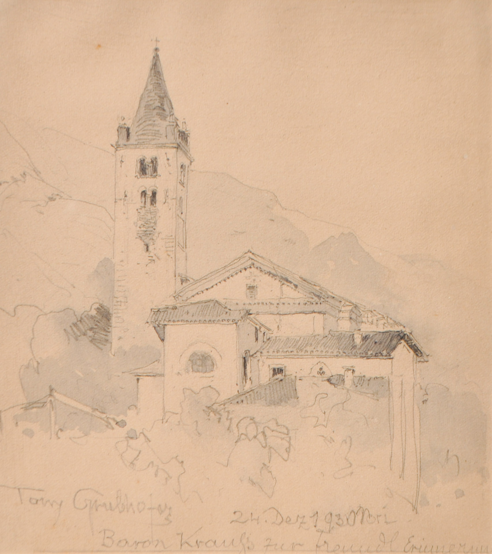 Tony Grubhofer Chiesa di Santo Stefano a Mori/Trentino;Matita acquerellata,...