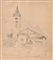 Tony Grubhofer Chiesa di Santo Stefano a Mori/Trentino;Matita acquerellata, 15,2 x 14,2 cm (entro