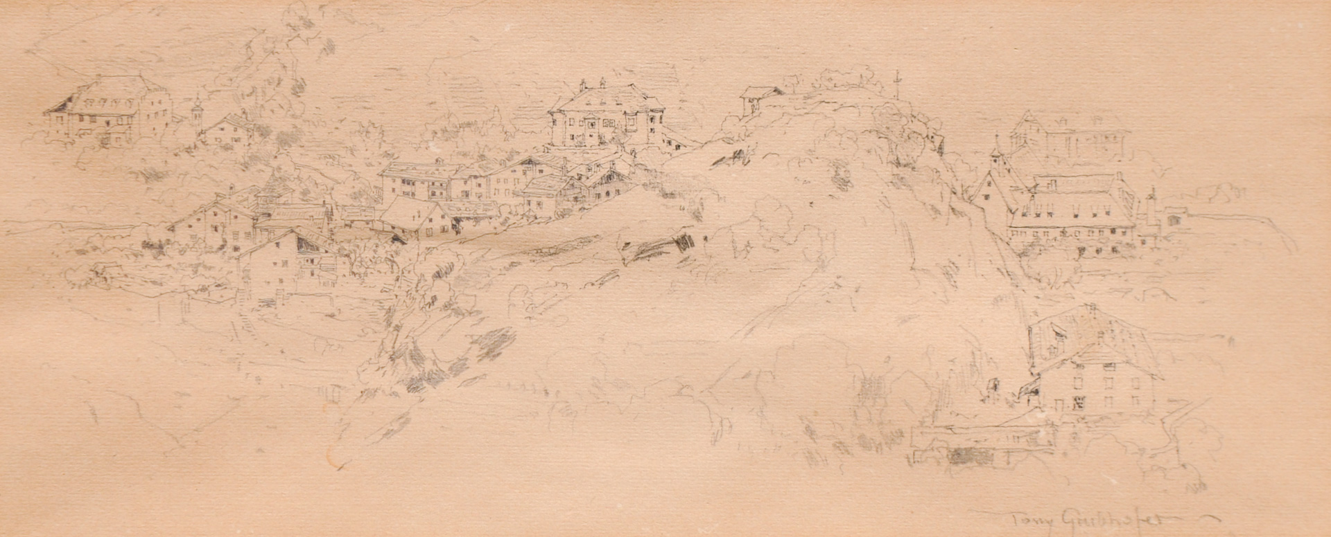 Tony Grubhofer (Innsbruck 1854 - 1935) Paesaggio in Alto Adige;Matita, 12 x...