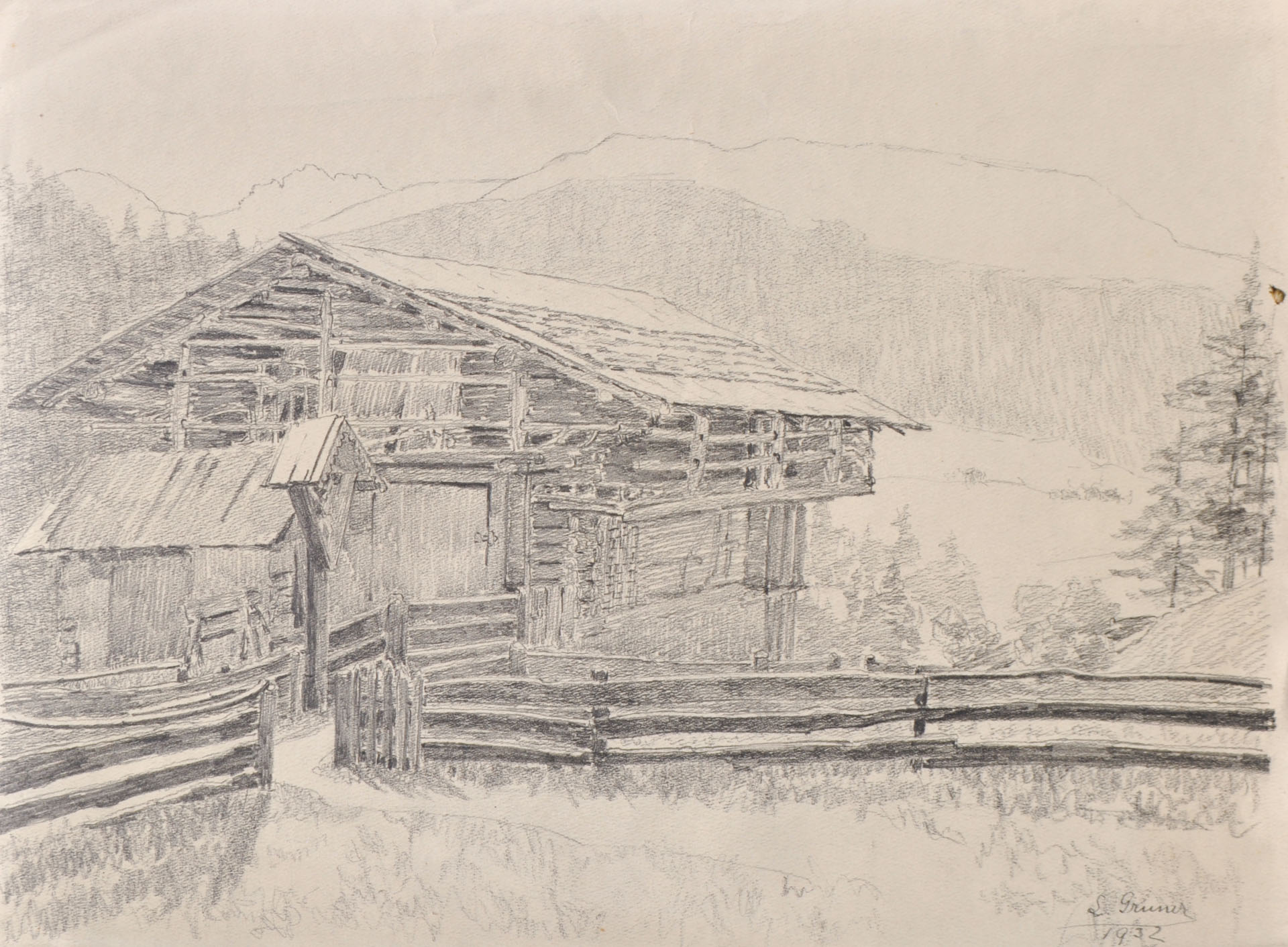 Lila Gruner Fienile in Val Gardena, 1932;Matita, 29,3 x 29,7 cm