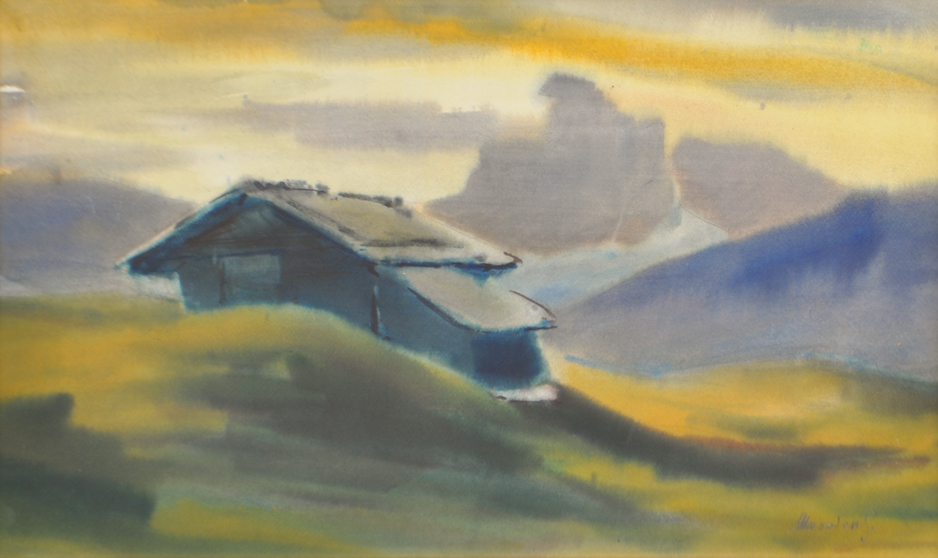 Gottfried Moroder (St. Ulrich in Gröden/Ortisei 1921 - 2016) Fienile in Val Gardena;Acquerello, 36 x 60 cm, in cornice
