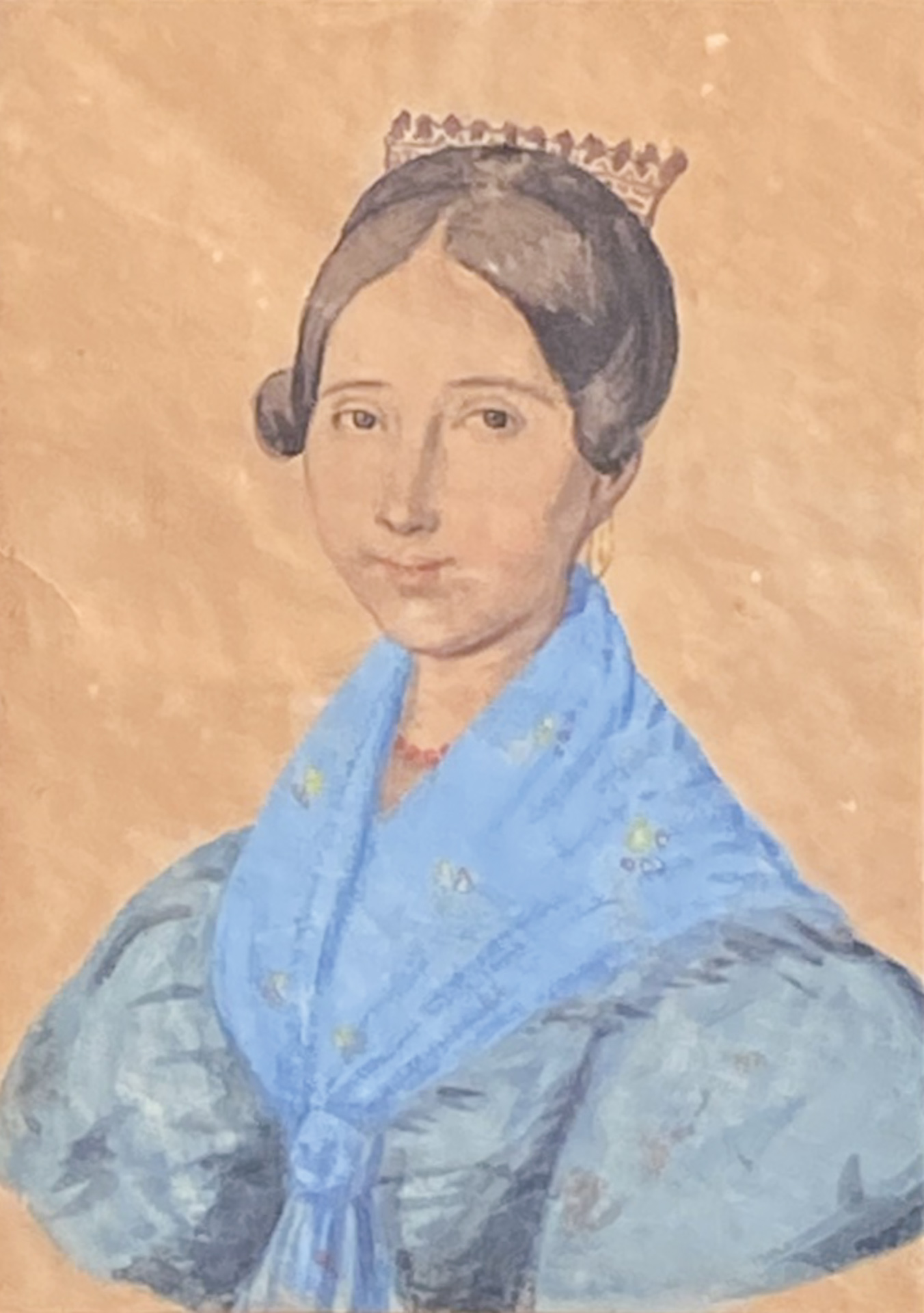 Maler um 1840/Pittore del 1840 ca. Ritratto Elisabeth Kieser nata Buchner, figlia del locandiere Kaiserkronenwirt;Guazzo, 20 x 14,5 cm, in cornice