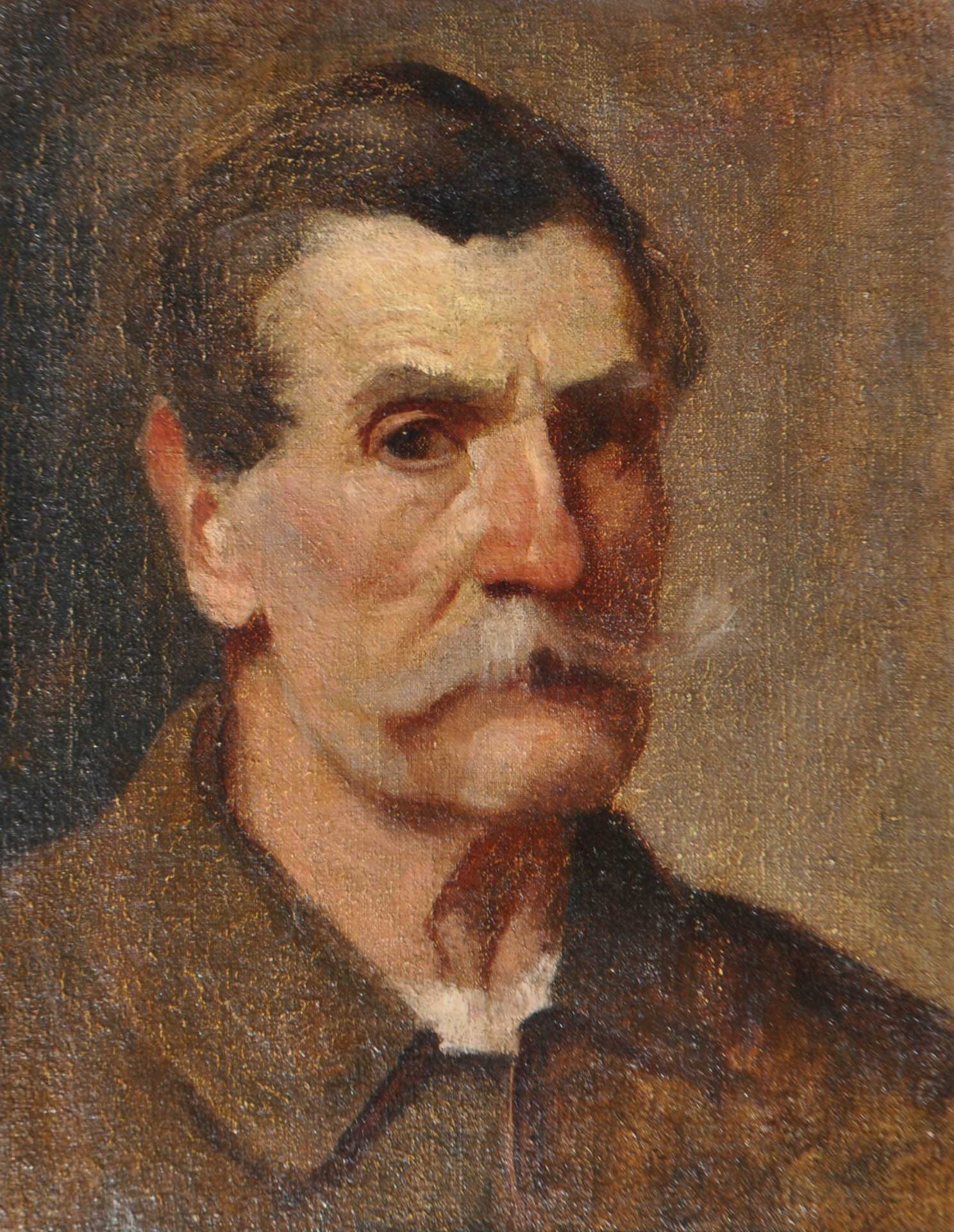 Thomas Walch (Imst 1867 - 1943) Ritratto di un uomo con baffi;Olio su tela su...