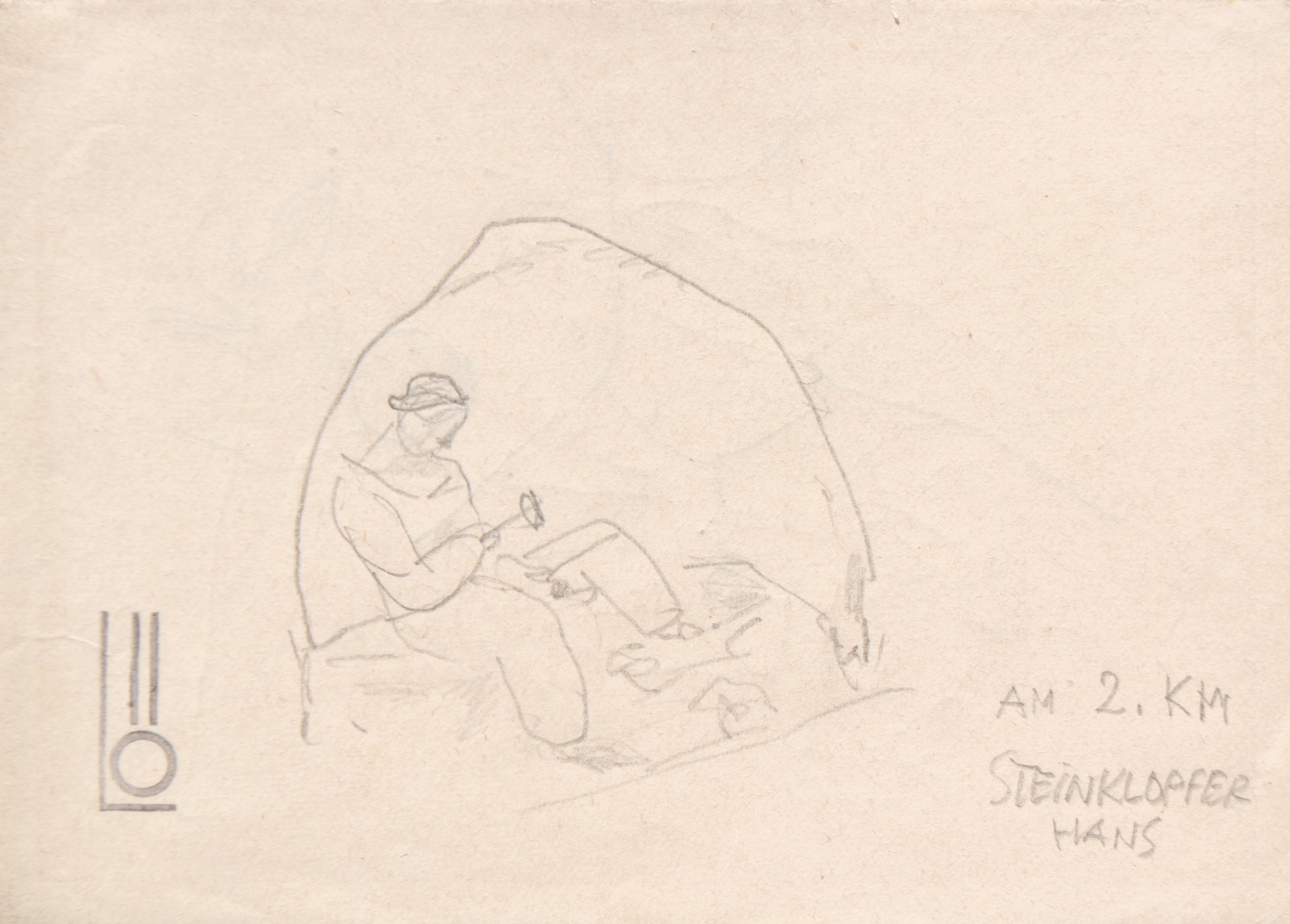 Bertold Löffler (Liberec 1874 - Wien/Vienna 1960) "Am 2. km Steinklopfer Hans";Matita, 11 x 15,3 cm, sul retro ulteriori schizzi