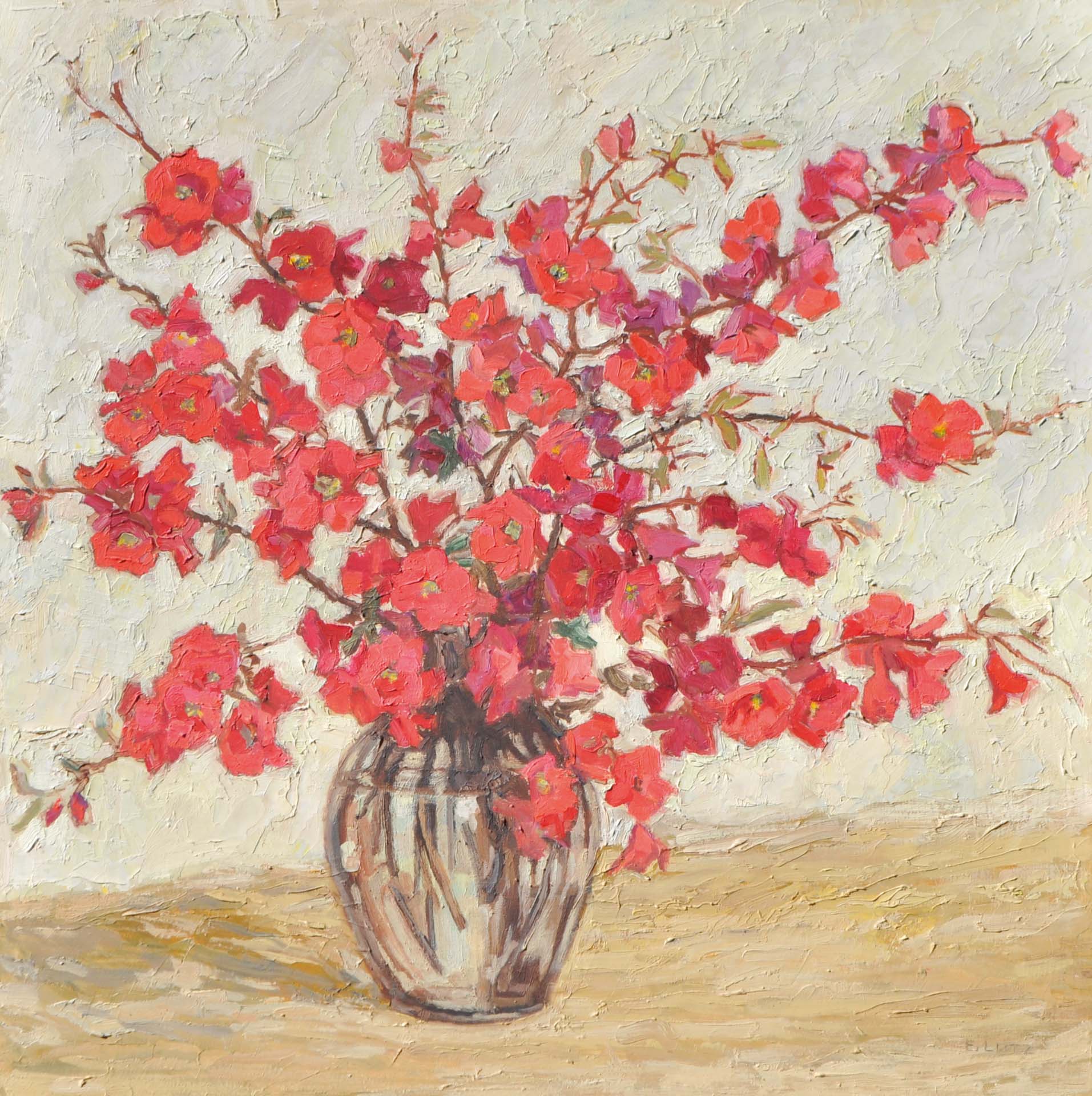 Lotto 594 | Edith Lutz-Romani Rami di cotogno in vaso;Olio su cartone, 48 x 48 cm Firma