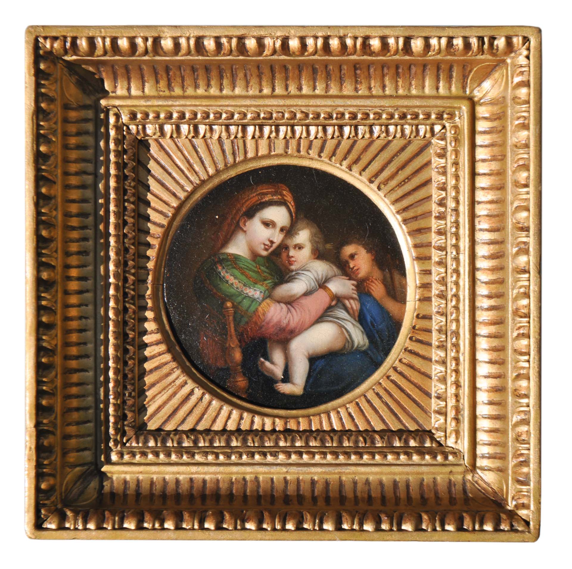 Kopie nach Raffael, 19. Jh./Copia da Raffaello, XIX secolo Madonna della Sedia (1514 ca.);Olio su metallo, diametro 13 cm, in cornice